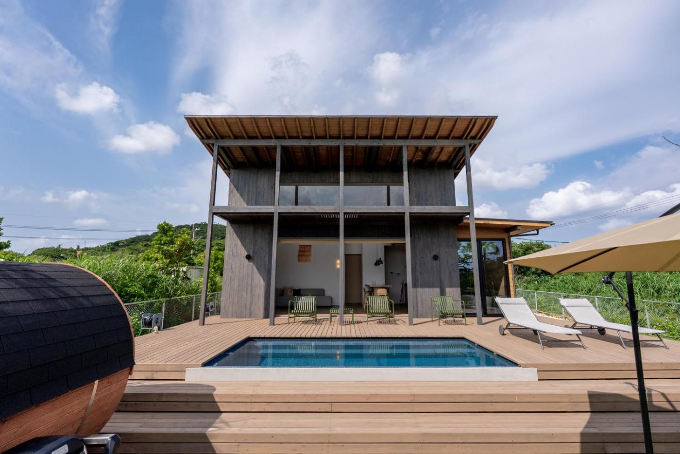 Villa. This villas standout features are the private pool and sauna. This air-conditioned villa comes with 1 living room, 2 separate bedrooms and 1 bathroom with a bath. Guests will find a stovetop, a refrigerator, a dishwasher and kitchenware in the well-equipped kitchen. The villa also includes a barbecue. The villa features a washing machine, tatami, a coffee machine, a flat-screen TV, as well as sea views. The unit has 6 futons.