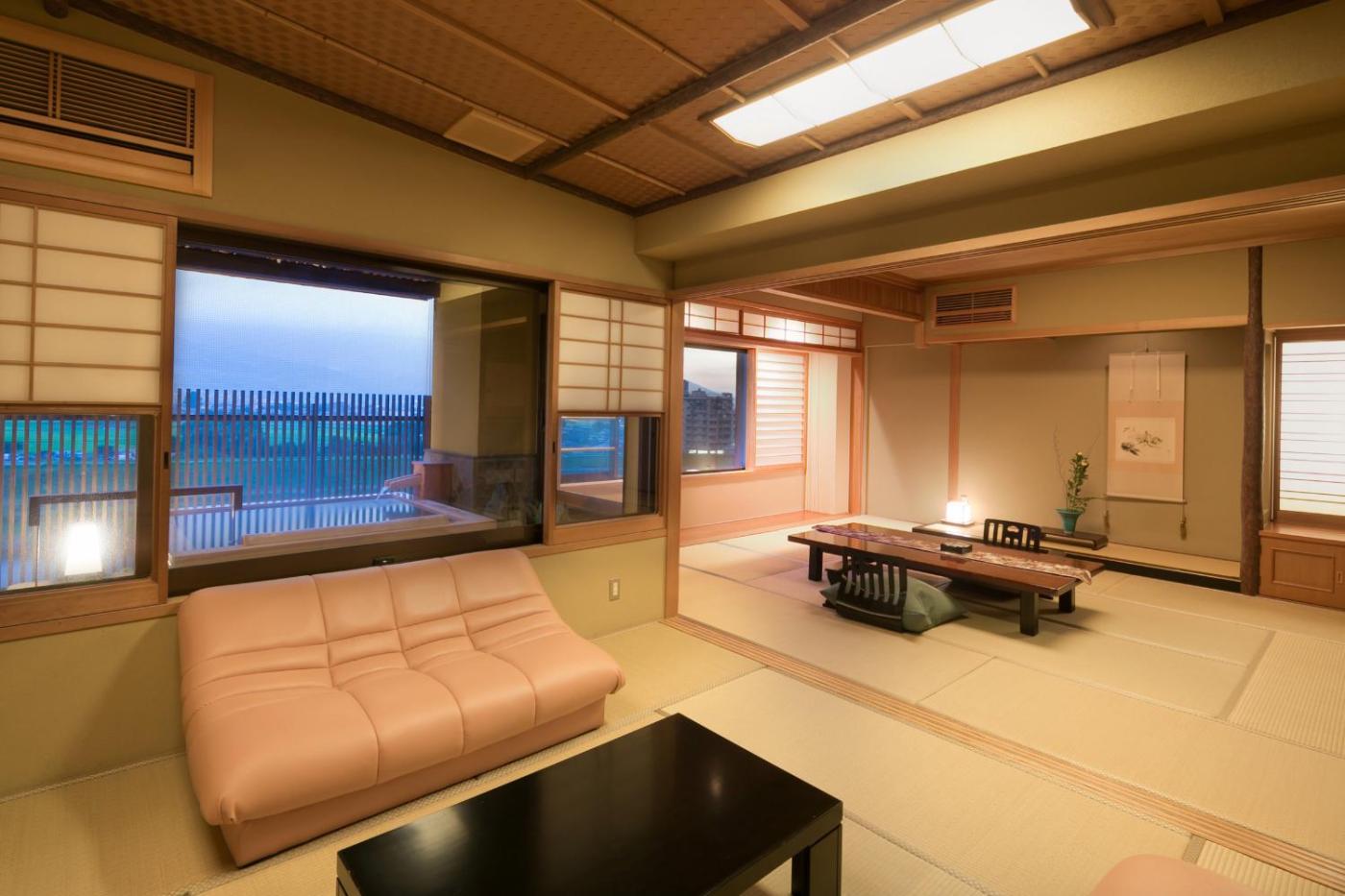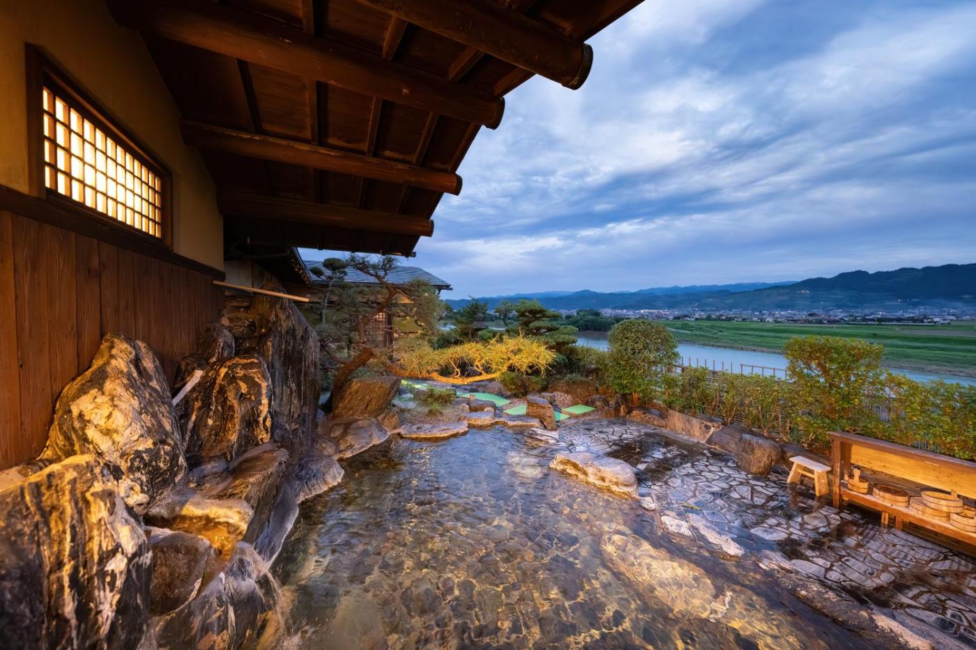 Deluxe Japanese-Style Room with Private Hot Spring Selected at Check-In. Spacious room featuring a private open-air hot spring bath with soothing views of Chikugo River and the rural landscape. It has a tatami (woven-straw) floor, a seating area and traditional futon bedding. Facilities include air conditioning and a flat-screen TV. Interiors differ, and guests are allocated a room on arrival. Room types are subject to availability. ;