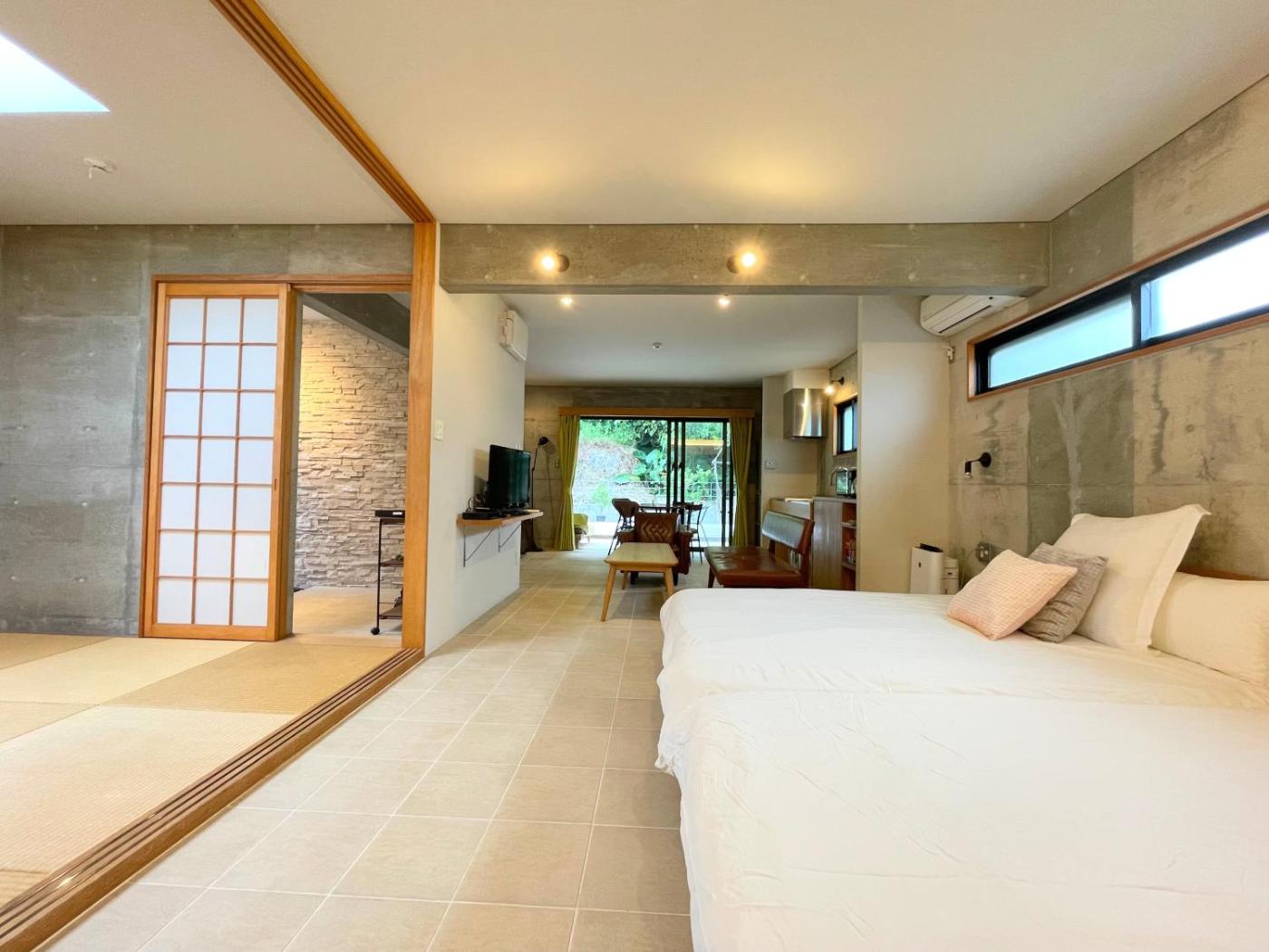 Villa - Beach Front. Featuring a private entrance, this air-conditioned villa is comprised of 1 living room, 1 separate bedroom and 1 bathroom with a bath and a shower. Guests will find a refrigerator, kitchenware, a microwave and a toaster in the well-equipped kitchen. The villa also has a barbecue. The villa offers a washing machine, tatami, a tea and coffee maker as well as a terrace with garden views. The unit offers 2 beds and 2 futons.