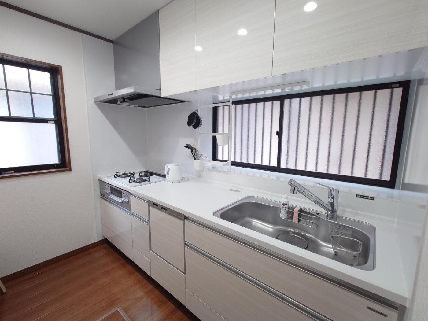Four-Bedroom House. Featuring a private entrance, this air-conditioned holiday home is comprised of a kitchen, 4 bedrooms and 2 bathrooms with a walk-in shower and a bath. Guests can make meals in the kitchen that is fitted with a refrigerator, a dishwasher, a microwave and an electric kettle. The holiday home features tatami floors, a seating area with a flat-screen TV with streaming services, a washing machine, a dining area, as well as a wardrobe. The unit offers 6 beds and 1 futon.