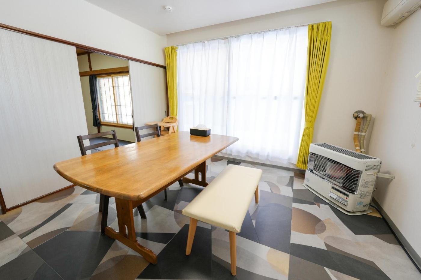 Two-Bedroom Apartment. Guests can make meals in the fully equipped kitchen that has a refrigerator, a microwave and a toaster. This apartment is air-conditioned and features a flat-screen TV, a washing machine, tatami and an electric kettle. The unit offers 2 beds and 3 futons.
