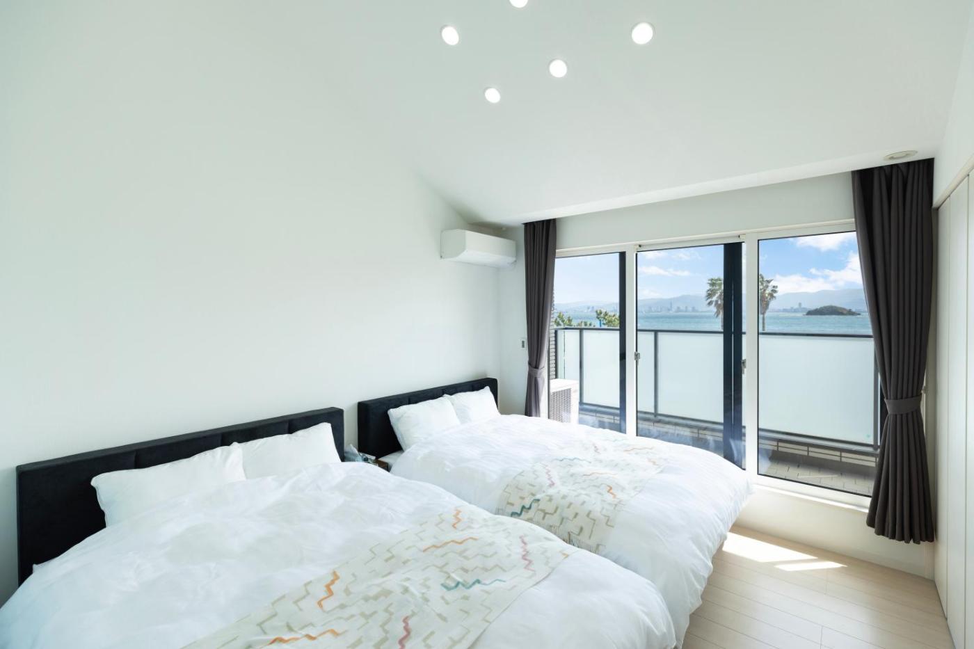 Five-Bedroom House. The sauna is the standout feature of this holiday home. Boasting a private entrance, this air-conditioned holiday home comes with 1 living room, 5 separate bedrooms and 2 bathrooms with a bath and a shower. Guests will find a stovetop, a refrigerator, kitchenware and a microwave in the well-fitted kitchen. The holiday home also includes a barbecue. The spacious holiday home features a washing machine, tatami, a tea and coffee maker, a flat-screen TV with streaming services, as well as sea views. The unit has 6 beds and 8 futons.