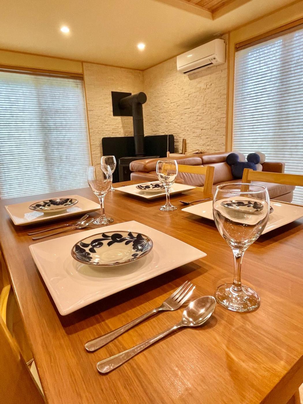 Three-Bedroom Villa. This villas special features are the hot tub and the fireplace. This villa consists of 1 living room, 3 separate bedrooms and 1 bathroom with a bath and free toiletries. The fully equipped kitchen features a stovetop, a refrigerator, kitchenware and a microwave. The air-conditioned villa provides a TV, a washing machine, tatami, soundproof walls as well as mountain views. The unit offers 2 beds and 6 futons.