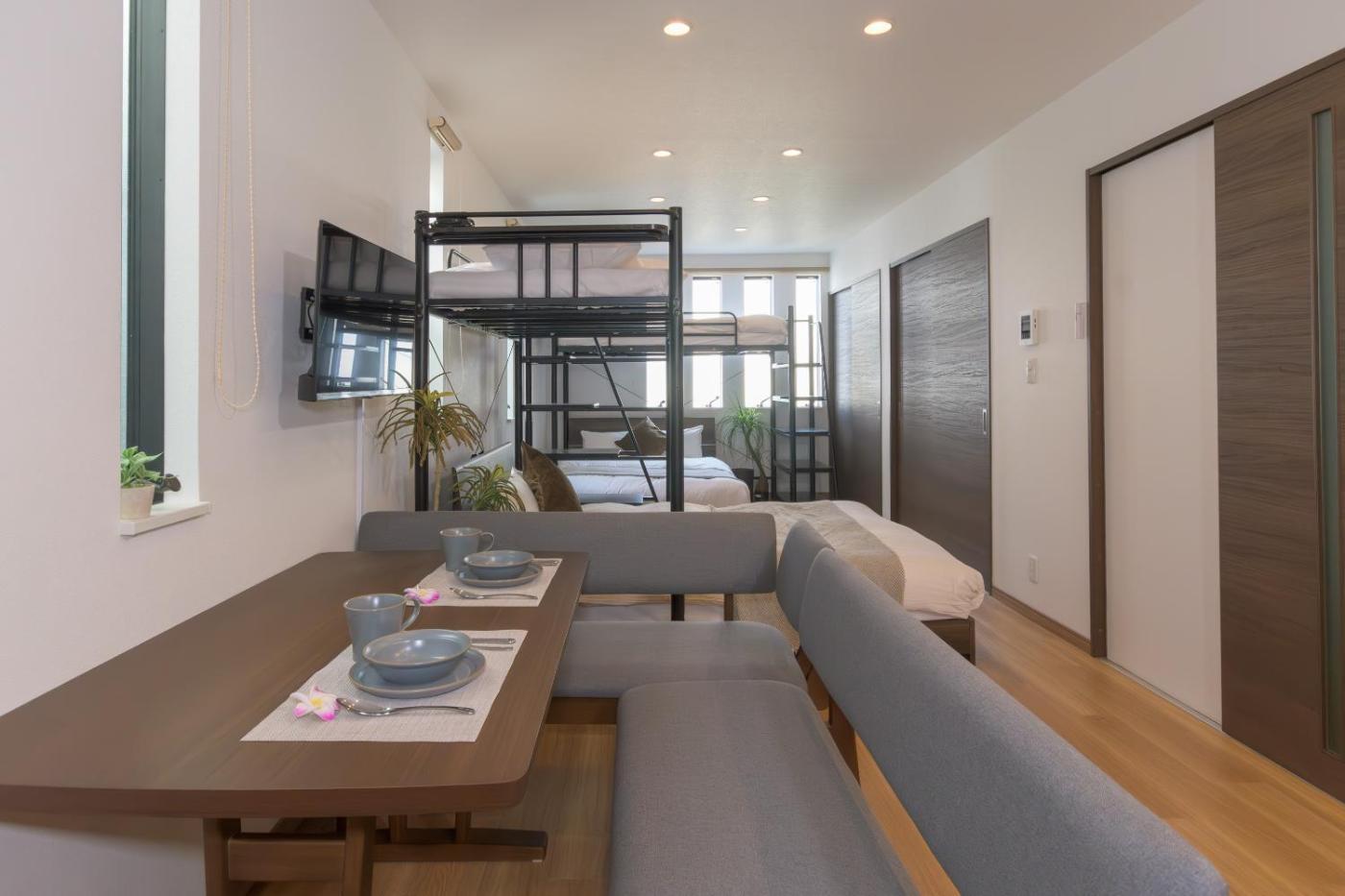 Family Room with 2 Double Beds and 2 Loft Beds (Up to 6 People). The air-conditioned apartment features 1 bedroom and 1 bathroom with a bath and a shower. In the well-fitted kitchen, guests will find a stovetop, a refrigerator, kitchenware and a microwave. The apartment provides a washing machine, a seating area, a wardrobe, a flat-screen TV, as well as a quiet street view. The unit offers 2 beds.