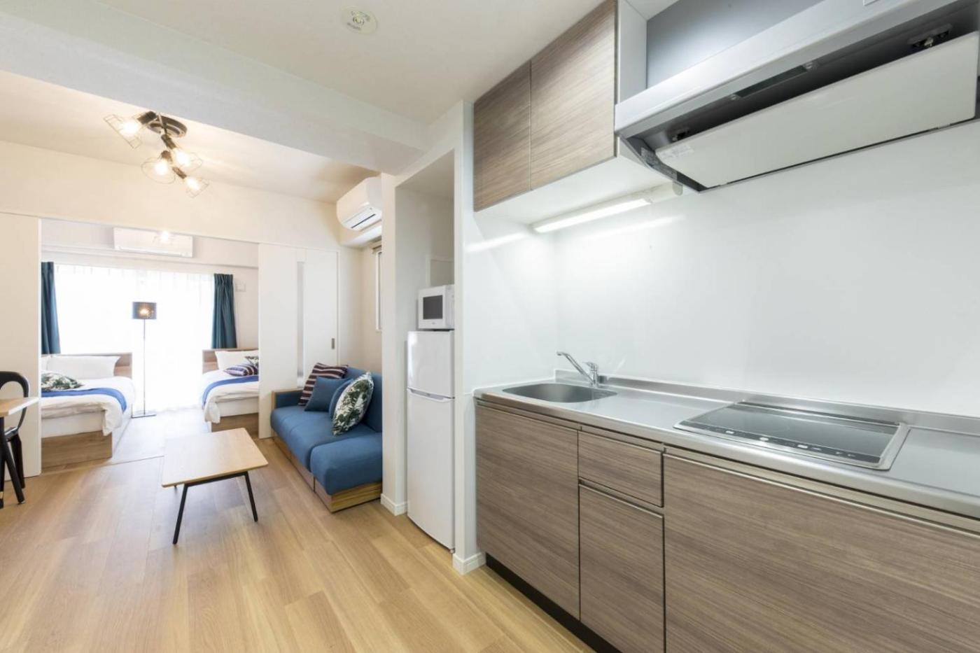 One-Bedroom Apartment - No Cleaning for Consecutive Night Stays. This apartment features 1 living room, 1 separate bedroom and 1 bathroom with a bath and free toiletries. The well-fitted kitchenette features a stovetop, a refrigerator, kitchenware and a microwave. This apartment is air-conditioned and has a seating area with a flat-screen TV, a washing machine, a wardrobe, an electric kettle, as well as a sofa. The unit has 3 beds.