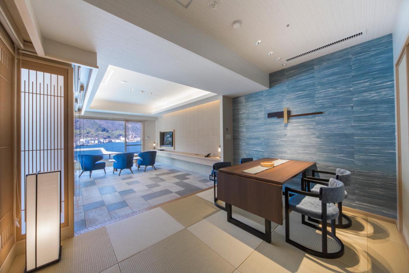 Japanese-Style Room with Ocean View. Featuring free toiletries, this family room includes a private bathroom with a bath, a shower and a hairdryer. The air-conditioned family room features a flat-screen TV, tatami, a safe deposit box, an electric kettle as well as sea views. The unit has 6 futons. ;
