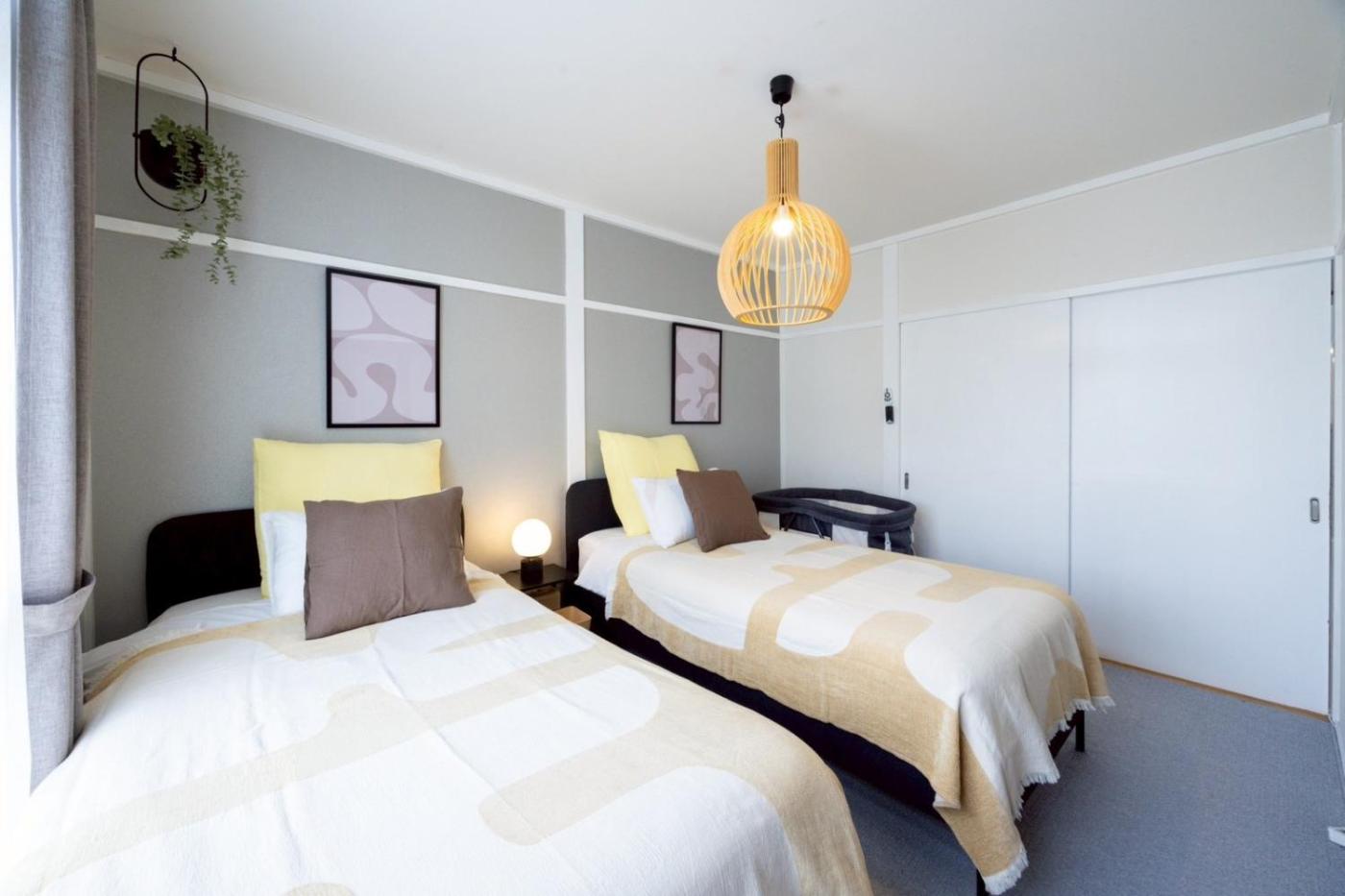 Two-Bedroom Apartment. The air-conditioned apartment has 2 bedrooms and 1 bathroom with a bath and a shower. Guests can make meals in the kitchen that has a stovetop, a refrigerator, kitchenware and a microwave. The apartment features a washing machine, an electric kettle, tumble dryer, a sofa and a flat-screen TV. The unit has 4 beds.
