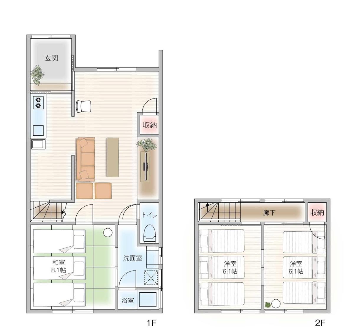 One-Bedroom Villa. Featuring a private entrance, this air-conditioned villa is comprised of 1 living room, 1 separate bedroom and 1 bathroom with a bath and a shower. The fully equipped kitchen features a stovetop, a refrigerator, kitchenware and a microwave. The villa offers a washing machine, tatami, a dining area, a flat-screen TV with streaming services, as well as a quiet street view. The unit offers 8 beds and 3 futons.