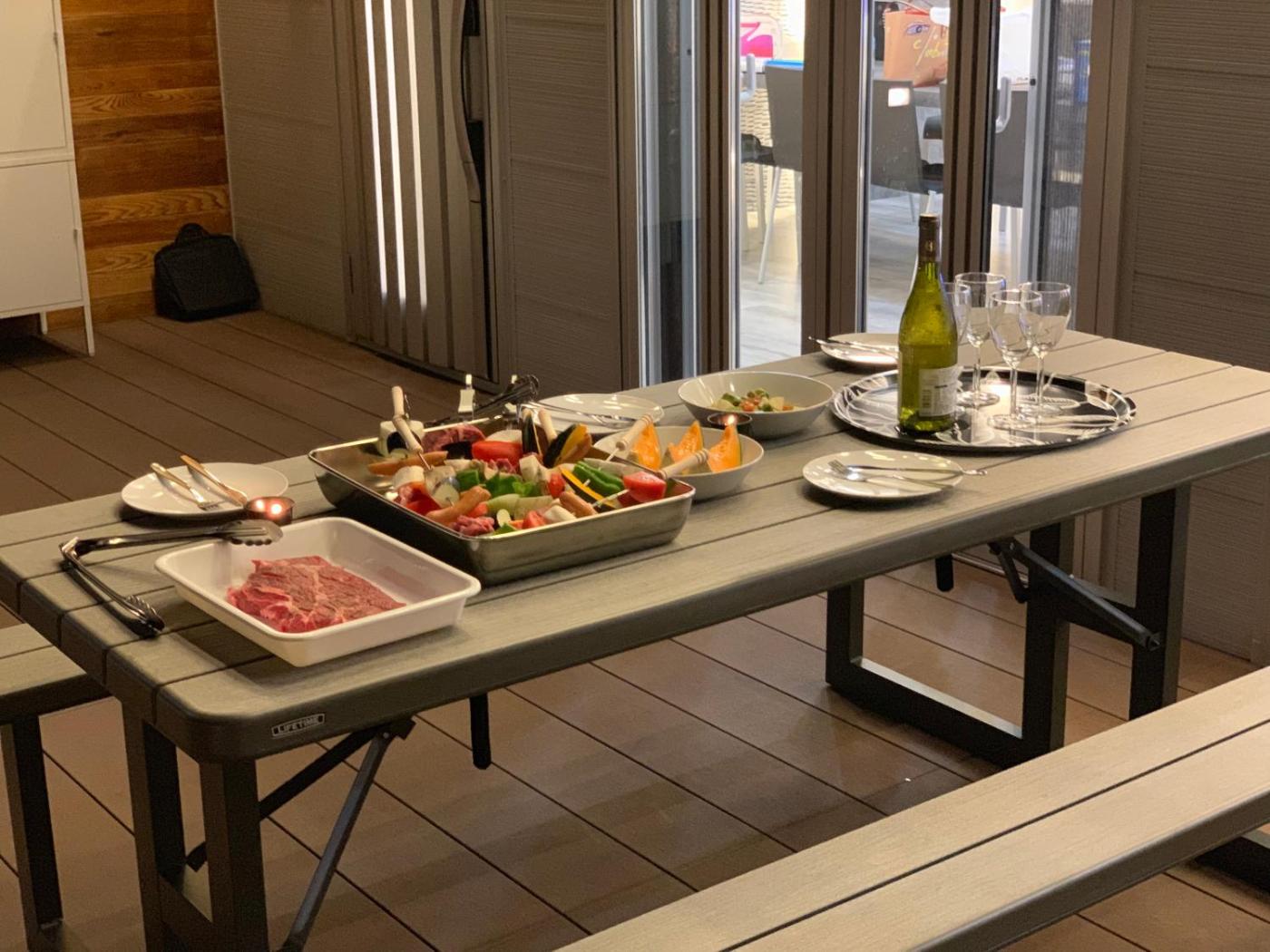 Three-Bedroom Villa. This villa comprises 1 living room, 3 separate bedrooms and 1 bathroom with a bath and free toiletries. Guests will find a stovetop, a refrigerator, a dishwasher and kitchenware in the well-fitted kitchen. The villa also provides guests with a barbecue. This air-conditioned villa is comprised of a dining area, a flat-screen TV with cable channels a washing machine and a terrace. The unit offers 5 beds.