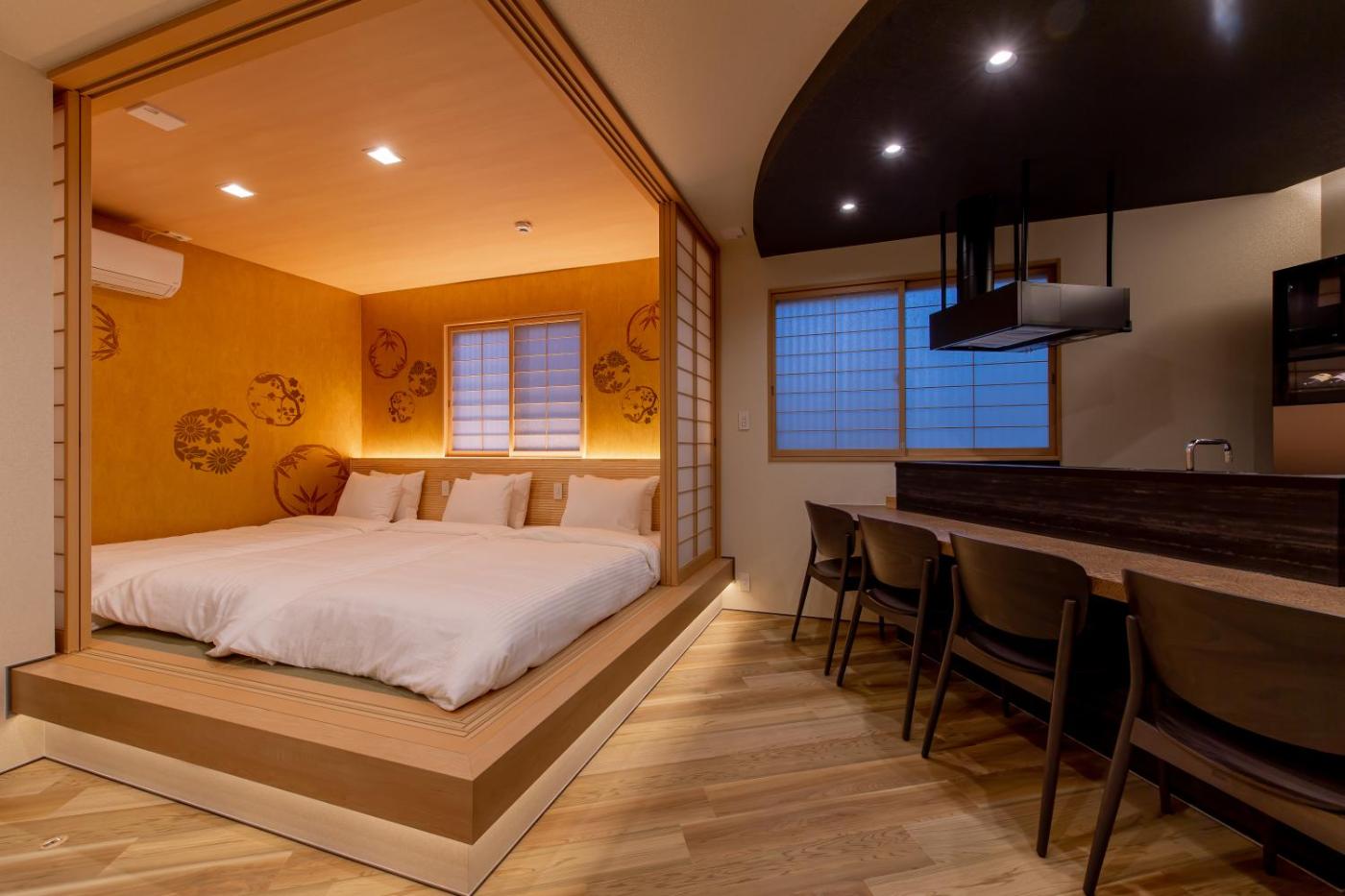 Two-Bedroom House. Featuring a private entrance, this air-conditioned holiday home consists of a kitchen, 2 bedrooms and 1 bathroom with a bath and a shower. In the well-equipped kitchen, guests will find a refrigerator, kitchenware, a microwave and a toaster. The holiday home provides a washing machine, tatami, a coffee machine, tumble dryer, as well as a flat-screen TV. The unit offers 4 beds.