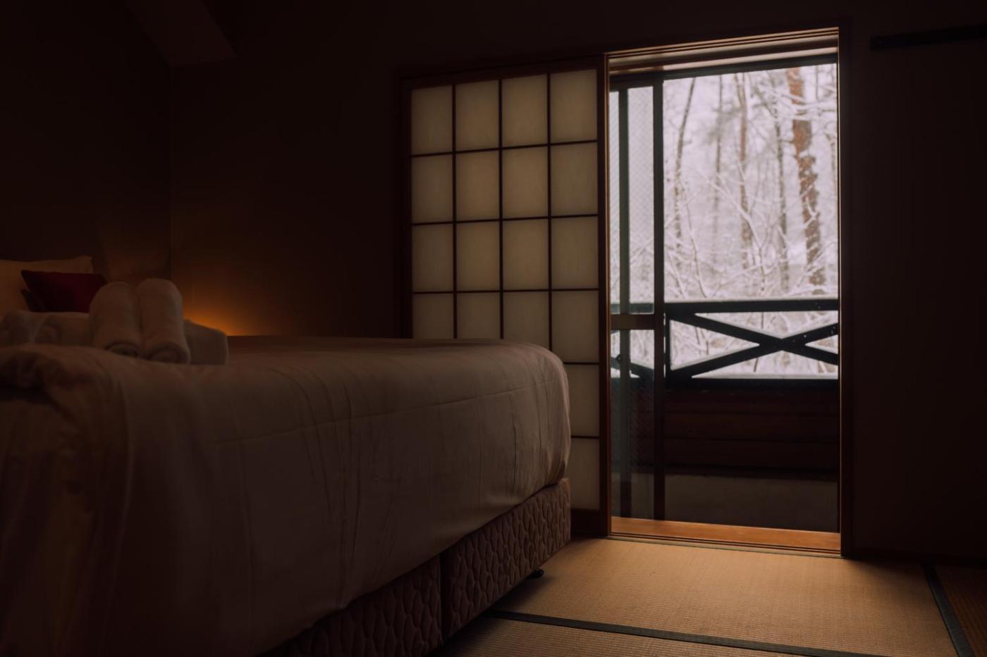 Rooms at Double Black Hotel mix traditional Japanese style with modern amenities and Western beds.are heated and include a yukata robe. The en suite bathroom has a shower.