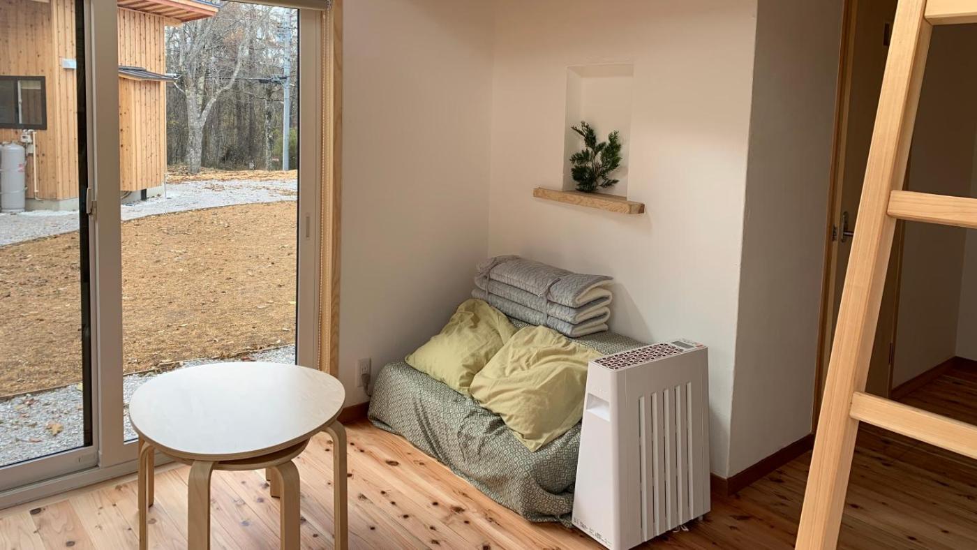 Cottage. This bungalows standout feature is the private open-air bath.(The semi-open-air bath cannot be used during the winter season from December to April 15th.) This bungalow includes 1 bedroom, kitchenette, a terrace and 1 bathroom with a bath. The kitchenette is fitted with a stovetop, a refrigerator and kitchenware. The bungalow has a circulator in summer and an oil heater in winter. There is no air conditioning. There are two beds. ;