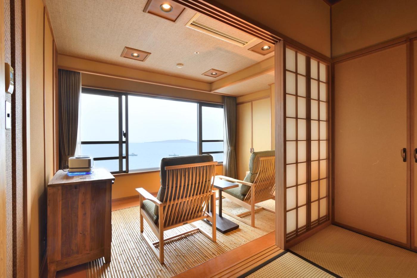 Japanese-Style Junior Suite with Ocean View - Upper Floor - Non-Smoking. Guests will have a special experience as this family room provides a hot tub. The family room includes a private bathroom, well-fitted with a bath, a shower, a bidet, a hairdryer and slippers. The spacious air-conditioned family room offers a flat-screen TV, tatami, a minibar, executive lounge access as well as sea views. The unit offers 6 futons.
