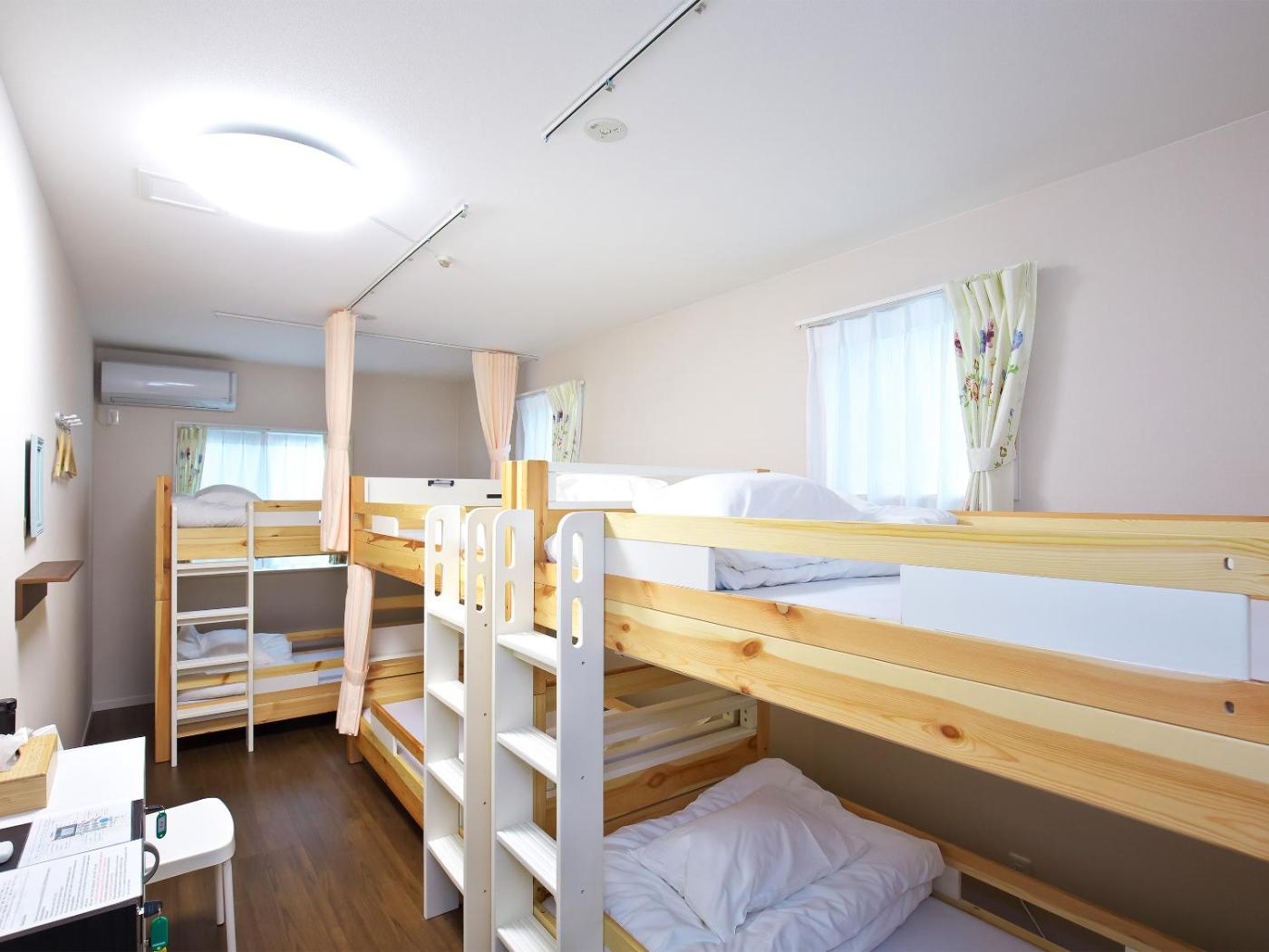 Standard Family Room. The family room features air conditioning, heating, as well as a shared bathroom boasting slippers. The family room has a quiet street view. The unit has 6 beds.