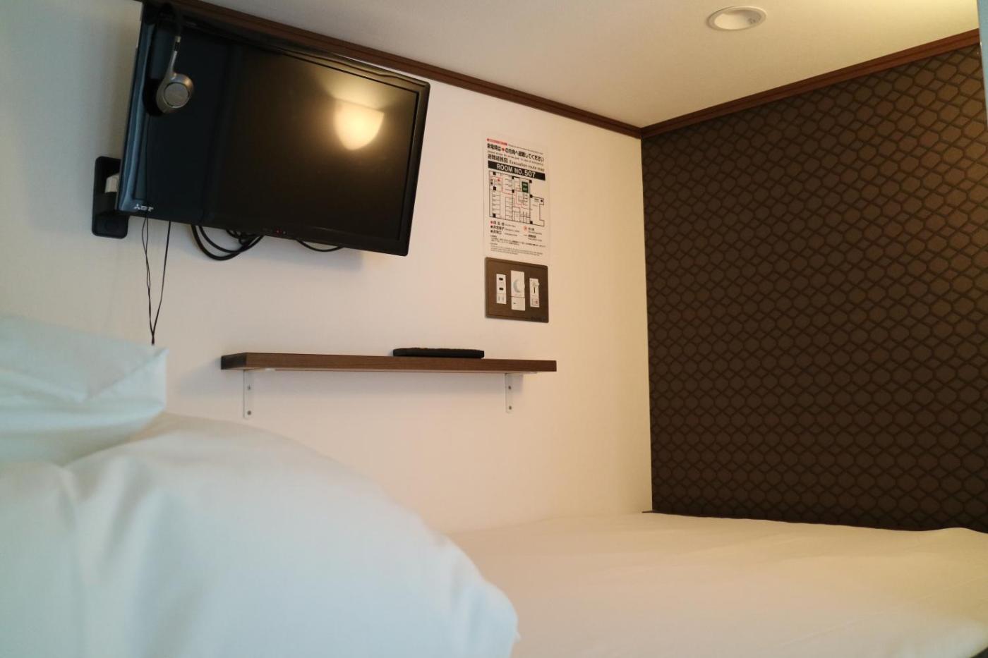 Tall Capsule Room. Providing free toiletries, this single room includes a shared bathroom with a bath or a shower and slippers. This single room features air conditioning, pajamas, a flat-screen TV and a balcony. The unit offers 1 bed.
