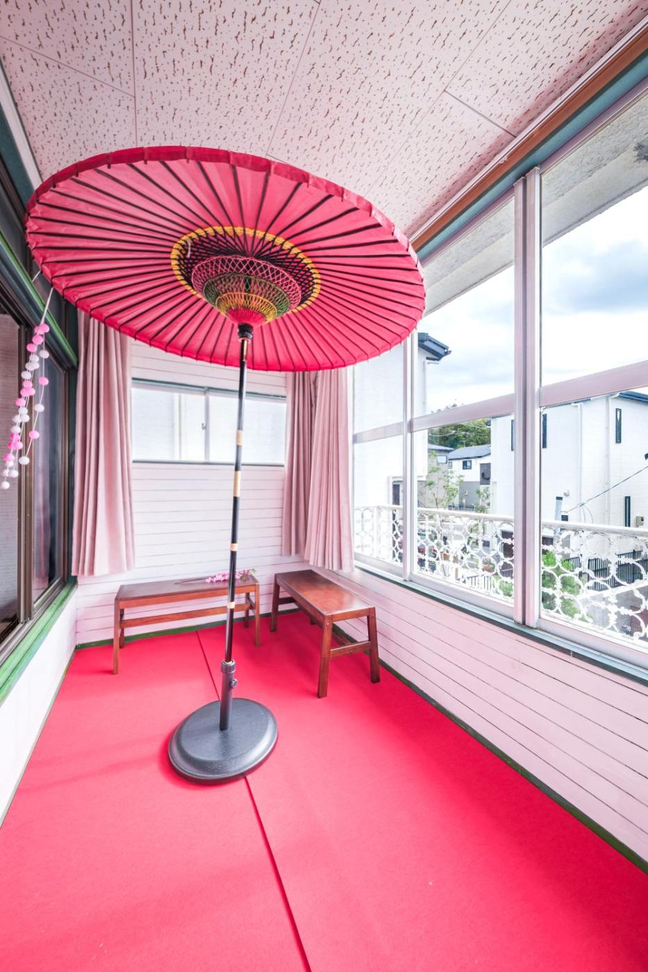 Five-Bedroom House. Boasting a private entrance, this air-conditioned holiday home comes with 1 living room, 5 separate bedrooms and 2 bathrooms with a bath and a shower. Guests can make meals in the kitchen that features a stovetop, a refrigerator, kitchenware and a microwave. The spacious holiday home features a flat-screen TV with streaming services, a washing machine, tatami, a dining area as well as garden views. The unit has 7 beds and 3 futons.