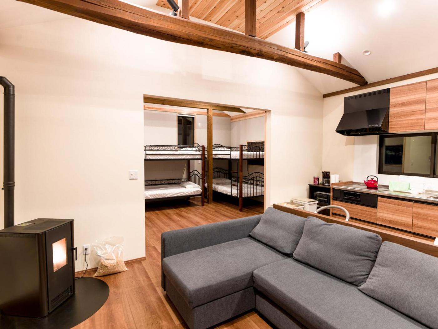 Two-Bedroom House. This holiday homes special feature is the fireplace. Boasting a private entrance, this air-conditioned holiday home features 1 living room, 2 separate bedrooms and 1 bathroom with a bath and a shower. Guests can make meals in the kitchen that has a stovetop, a refrigerator, kitchenware and a microwave. The holiday home features a washing machine, tatami, a coffee machine, a dining area and a flat-screen TV. The unit has 1 bed and 2 futons. ;