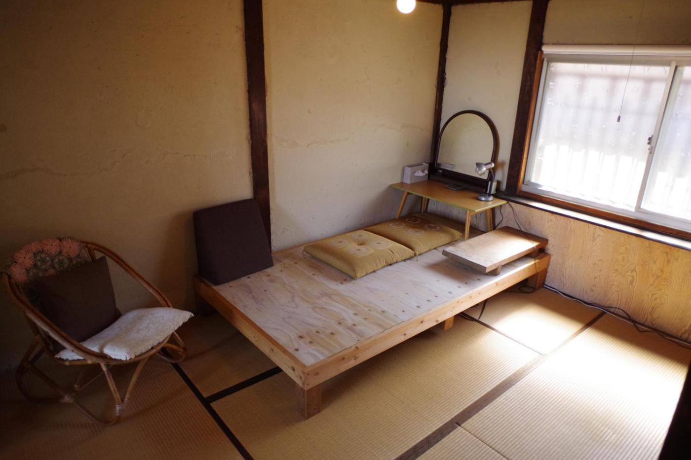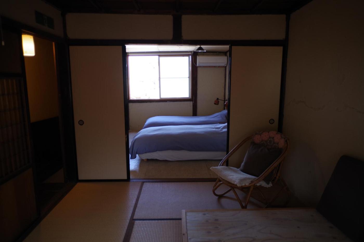 Two-Bedroom Townhouse. Featuring a private entrance, this air-conditioned holiday home is comprised of 3 living rooms, 2 separate bedrooms and 1 bathroom with a shower and a hairdryer. Meals can be prepared in the well-fitted kitchenette, which comes with a stovetop, a refrigerator, kitchenware and a microwave. The holiday home features tatami floors, a sofa, a washing machine, a dining area as well as ancourtyard view. The unit offers 3 beds and 1 futon.