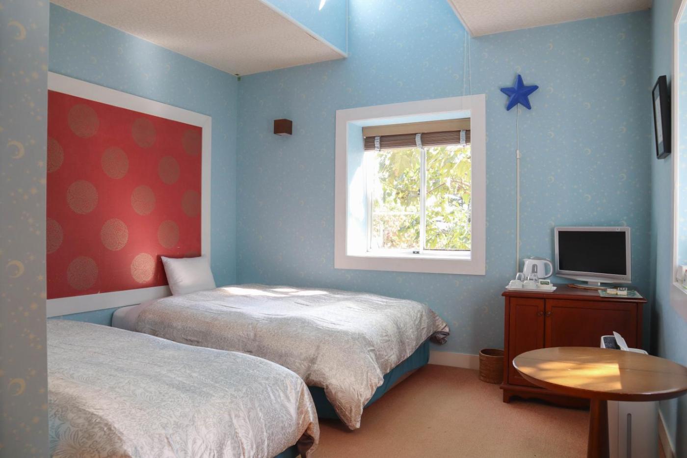 Standard Twin Room. Providing free toiletries, this twin room includes a private bathroom with a bath, a shower and a hairdryer. The air-conditioned twin room provides a flat-screen TV, a dining area, an electric kettle, heating as well as a quiet street view. The unit offers 3 beds. ;