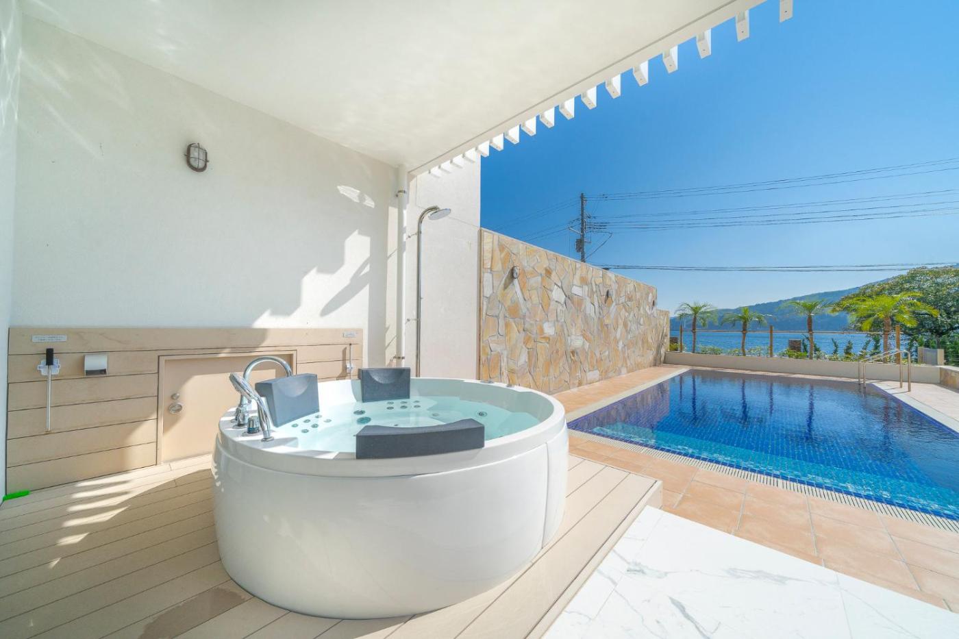 Three-Bedroom Villa - Tsuki. This villas standout features are the pool with a view and hot tub. Boasting a private entrance, this air-conditioned villa includes 1 living room, 3 separate bedrooms and 1 bathroom with a bath and a shower. Guests will find a stovetop, a refrigerator, a dishwasher and kitchenware in the fully equipped kitchen. The villa also features a barbecue. The spacious villa offers a flat-screen TV with streaming services, a washing machine, a tea and coffee maker, a dining area as well as sea views. The unit has 6 beds.