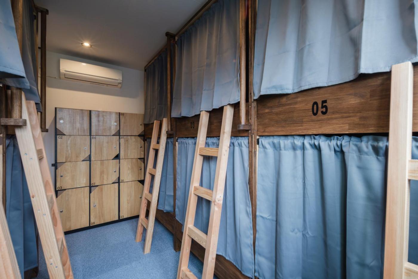 At the capsule hotel rooms are fitted with air conditioning and a shared bathroom.
