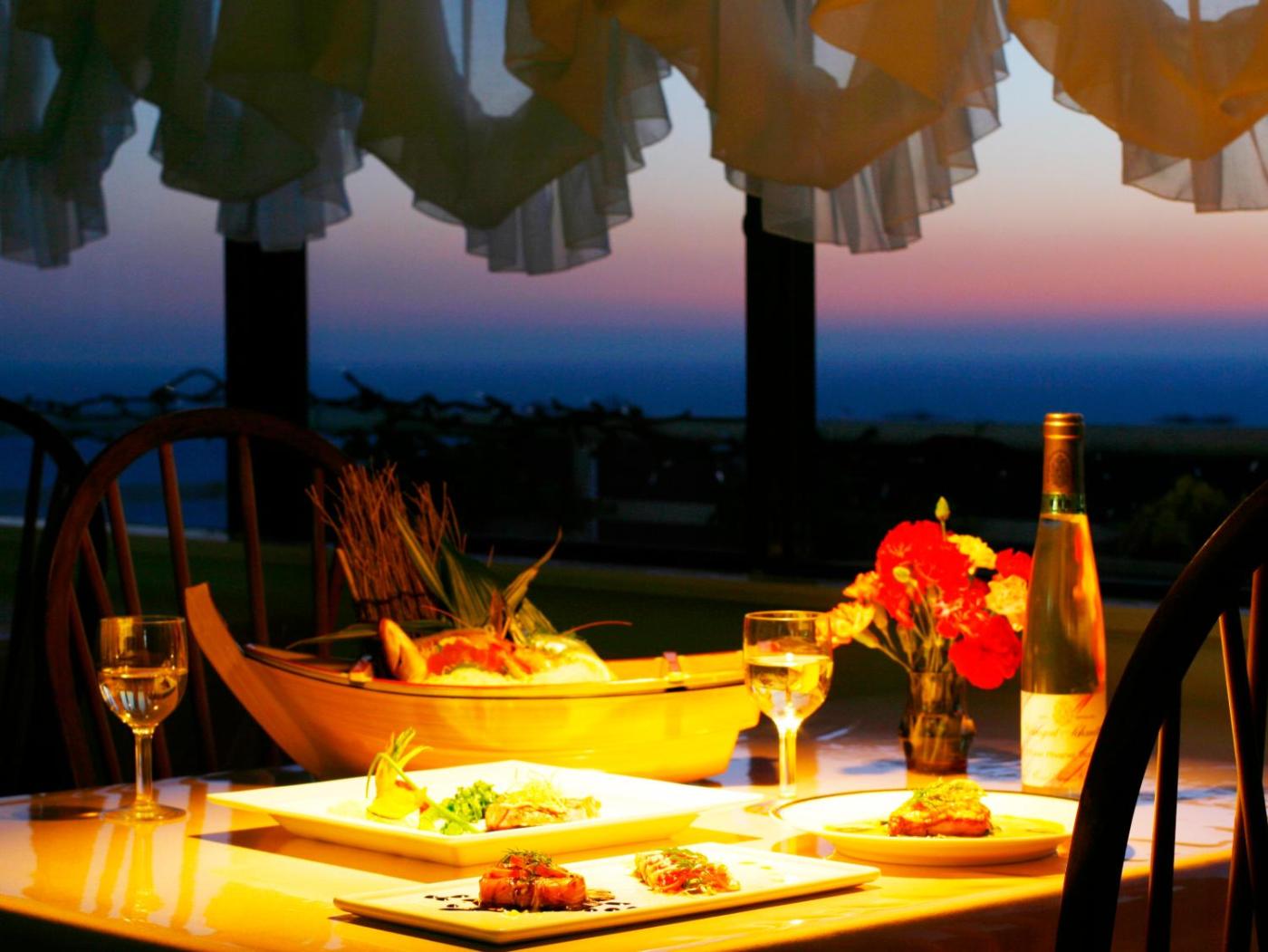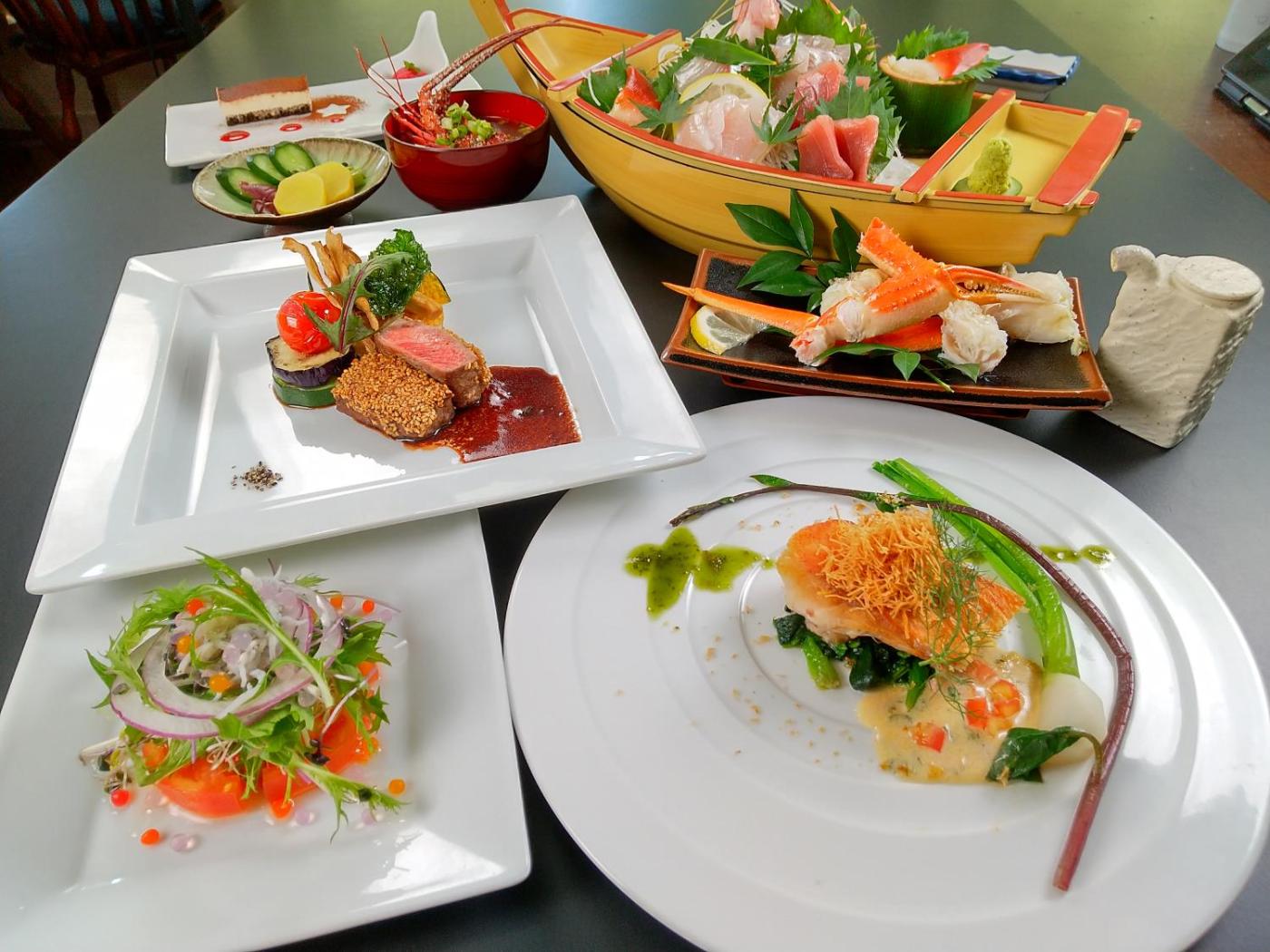 A Western-style breakfast and a French course dinner is provided at the property. Japanese lobster, crab and cakes for special occasions are also available upon request.