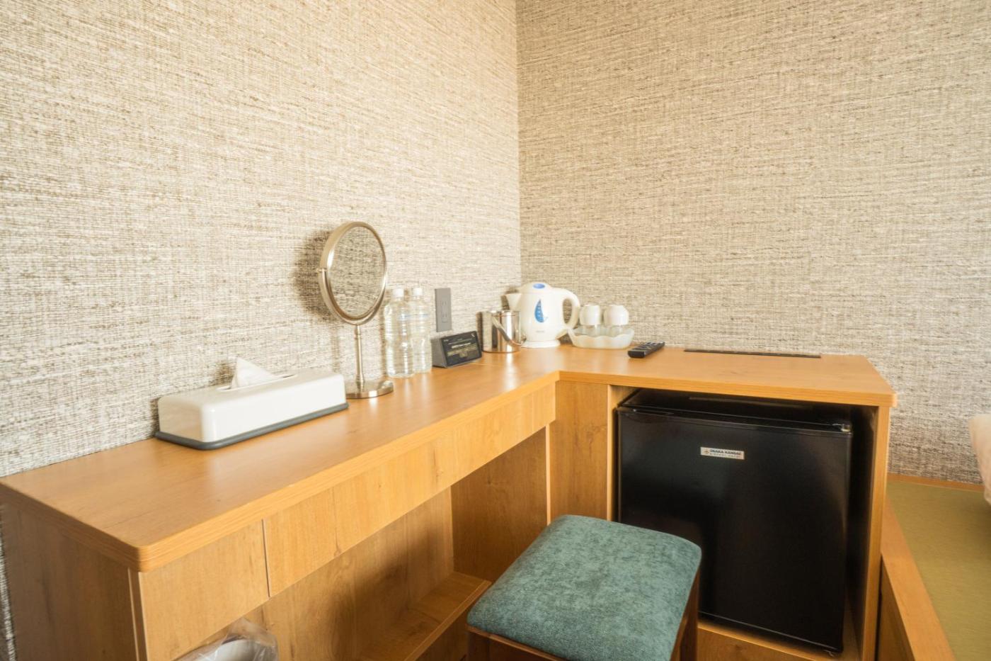 Japanese-Style Quadruple Room. The quadruple room features air conditioning, tatami, as well as a private bathroom boasting a bath and a shower. The quadruple room offers a seating area, an electric kettle, pajamas, heating and a flat-screen TV. The unit has 2 futons. ;