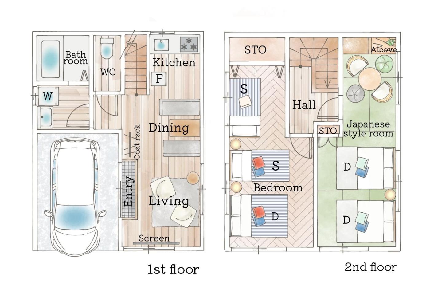 Two-Bedroom House. The air-conditioned holiday home features 2 bedrooms and 1 bathroom with a bath and a bidet. The well-equipped kitchen has a stovetop, kitchenware and a microwave. The holiday home offers a washing machine, tatami, a dining area, an electric kettle and a flat-screen TV with streaming services. The unit offers 5 beds.