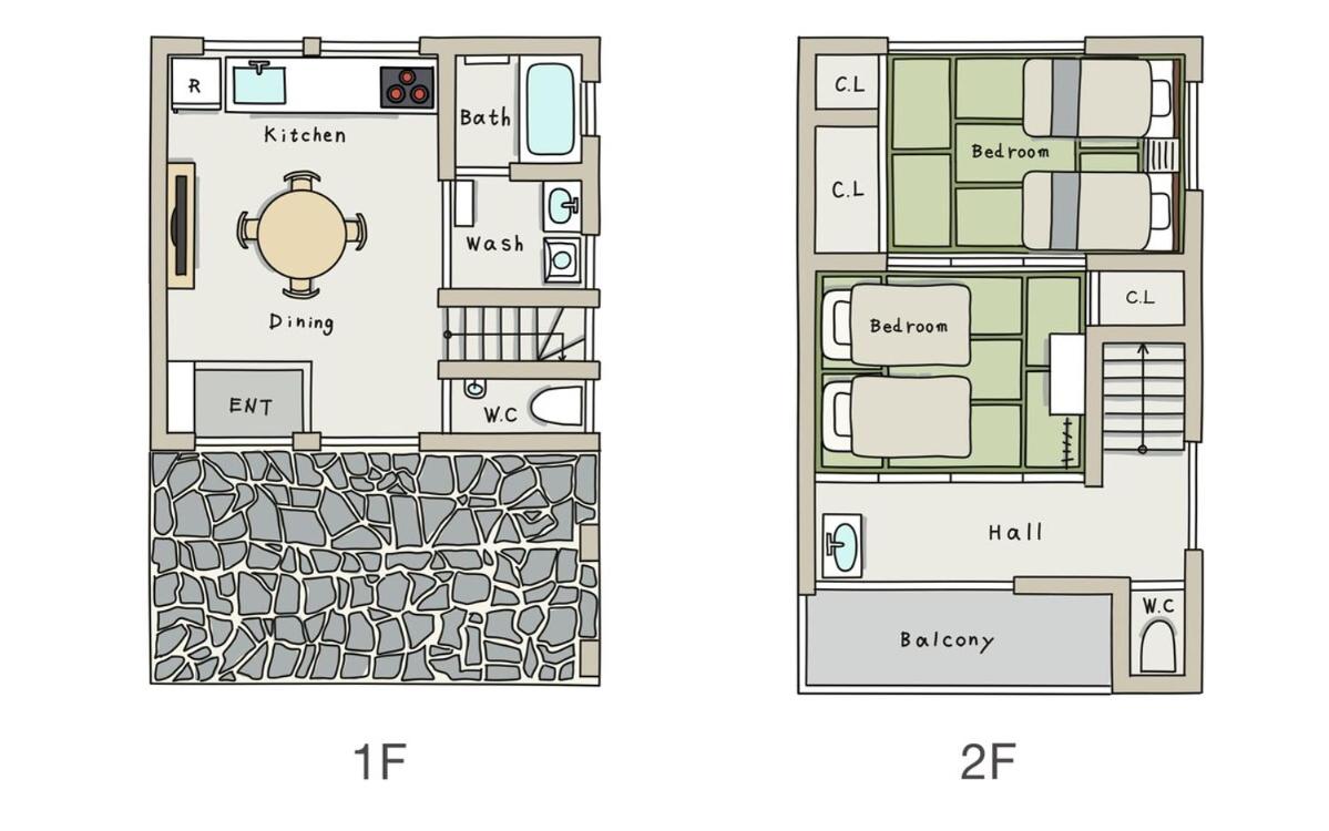 Two-Bedroom Apartment. The air-conditioned apartment features 1 bedroom and 1 bathroom with a bath and a shower. Meals can be prepared in the well-fitted kitchen, which is equipped with a stovetop, a refrigerator, kitchenware and a microwave. The apartment provides a washing machine, tatami, a tea and coffee maker, a flat-screen TV with streaming services, as well as a quiet street view. The unit offers 2 beds.