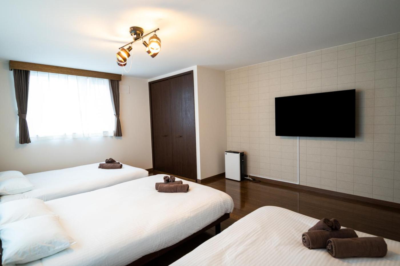 Three-Bedroom Apartment. This spacious apartment features 1 living room, 3 separate bedrooms and 2 bathrooms with a bath and a shower. A kitchen fitted with a refrigerator, kitchenware and a microwave is available for cooking and storing food. The apartment features air conditioning, a washing machine, tatami, a tea and coffee maker, as well as a flat-screen TV. The unit has 4 beds and 3 futons.