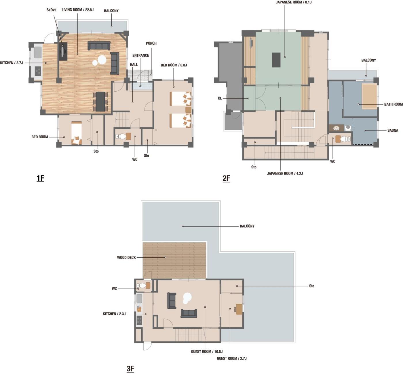 Holiday Home. Boasting 3 bedrooms and 1 bathroom with a bath, this spacious holiday home has a well-fitted kitchen and a terrace. Guests will find a stovetop, a refrigerator, a dishwasher and kitchenware in the fully equipped kitchen. The holiday home also features a barbecue. The air-conditioned holiday home offers a flat-screen TV, a washing machine, tatami, a dining area as well as sea views. The unit offers 3 beds and 5 futons.