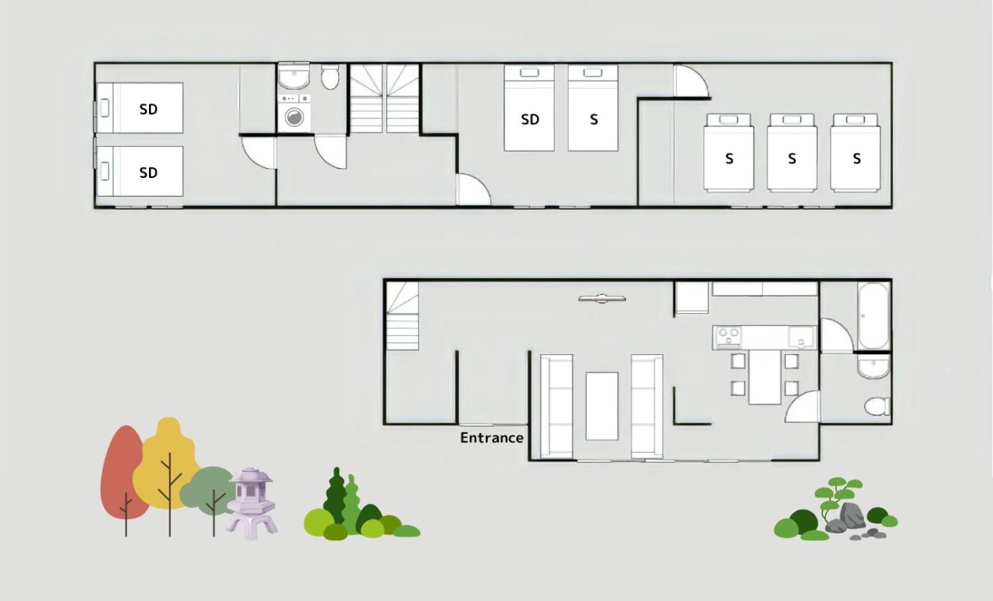 Holiday Home. Guests will have a special experience as this holiday home offers a hot tub. Featuring a private entrance, this spacious holiday home also comprises 3 bedrooms, a seating area and 1 bathroom with a walk-in shower and a bath. The well-fitted kitchen features a stovetop, a refrigerator, kitchenware and an oven. The air-conditioned holiday home provides a flat-screen TV with cable channels, a washing machine, tatami, soundproof walls as well as garden views. The unit offers 4 beds and 5 futons.