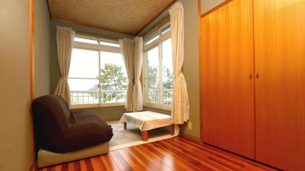 Japanese-Style Quadruple Room. The quadruple room provides heating, as well as a shared bathroom featuring a hairdryer. The air-conditioned quadruple room offers a flat-screen TV, tatami, a tea and coffee maker, yukata as well as sea views. The unit offers 4 futons. ;
