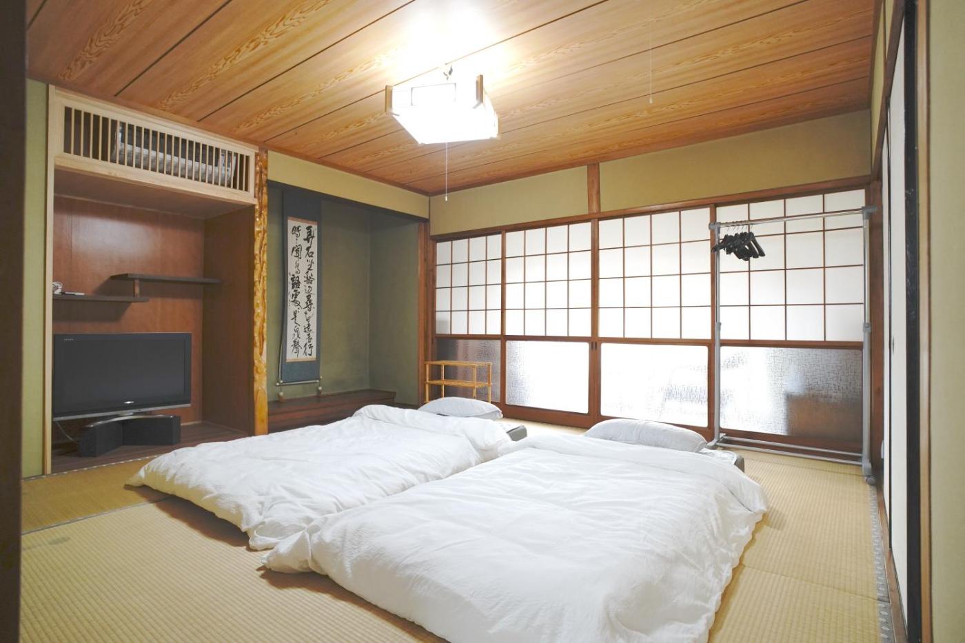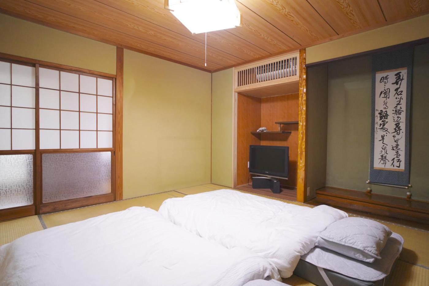 Holiday Home. This holiday home features a hot tub. The air-conditioned holiday home has 2 bedrooms and 1 bathroom with a bath and a shower. Meals can be prepared in the kitchen, which has a stovetop, a refrigerator, kitchenware and a microwave. The holiday home features tatami floors and features a washing machine, a dining area as well as a terrace with garden views. The unit has 5 futons.