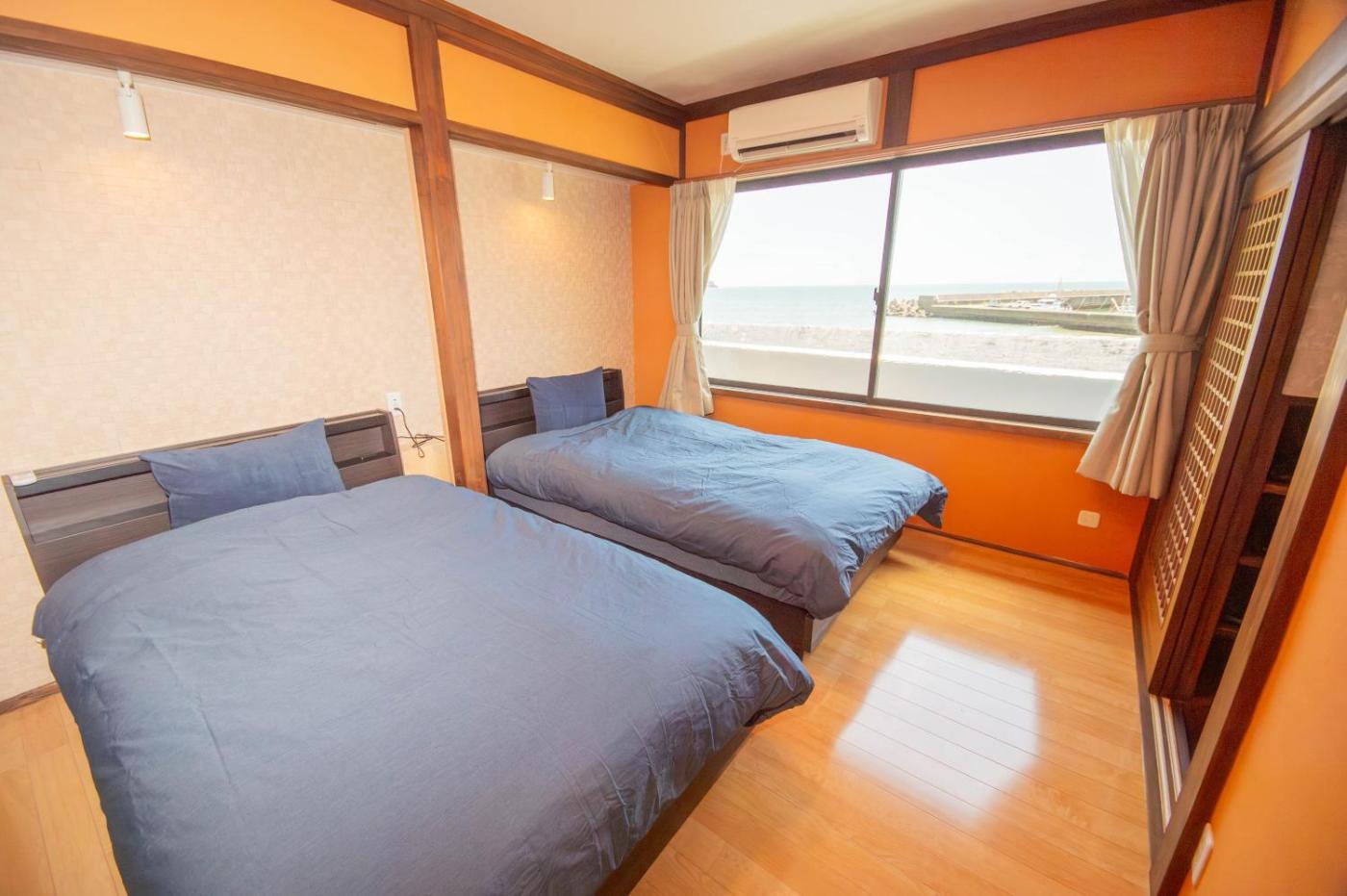 Villa with Sea View. The air-conditioned villa features 4 bedrooms and 1 bathroom with a bath and a shower. The well-fitted kitchen has a stovetop, a refrigerator, kitchenware and a microwave. The villa offers a flat-screen TV with streaming services, a washing machine, tatami, soundproof walls as well as sea views. The unit offers 2 beds and 9 futons.