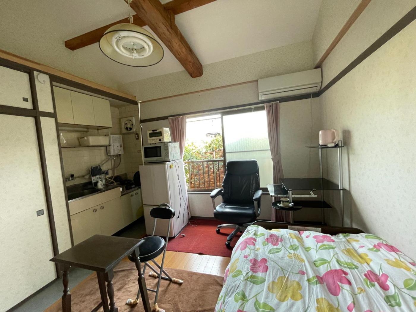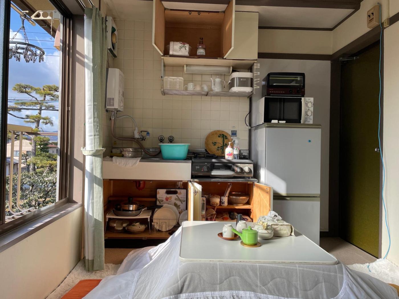 Apartment with Garden View. The apartment offers air conditioning, a washing machine, as well as a shared bathroom featuring a bath and a shower. In the kitchen, guests will find a stovetop, a refrigerator, kitchenware and a microwave. The apartment features tatami floors and provides a wardrobe, an electric kettle and garden views. The unit offers 2 futons. ;
