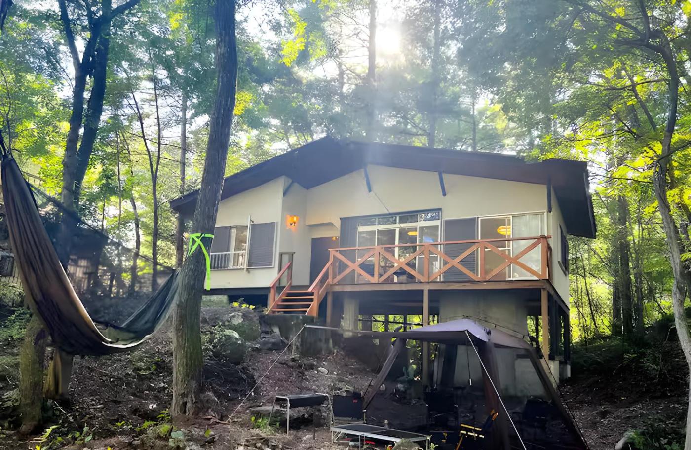 Two-Bedroom House. This holiday homes special feature is the hot tub. Boasting a private entrance, this holiday home includes a kitchen, 1 bedroom and 1 bathroom with a bath and a shower. Guests will find a stovetop, a refrigerator, kitchenware and a microwave in the kitchen. The holiday home also features a barbecue. The holiday home has tatami floors and offers a washing machine, a dining area as well as a terrace with garden views. The unit has 3 beds.
