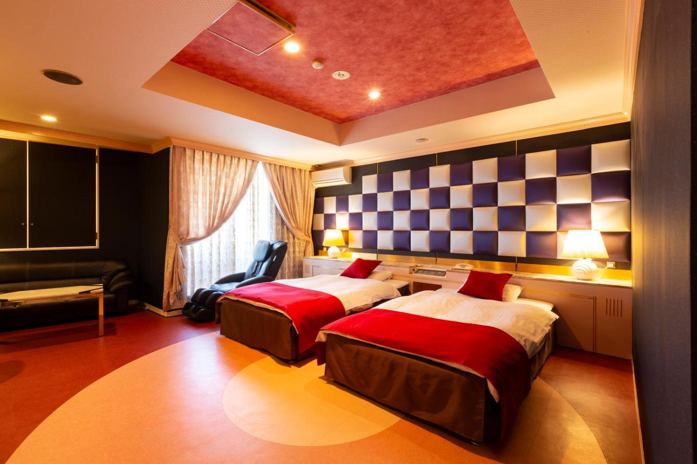 At the love hotel, every room includes a wardrobe and a flat-screen TV. The private bathroom is equipped with a bath and free toiletries.guest rooms will provide guests with a fridge.