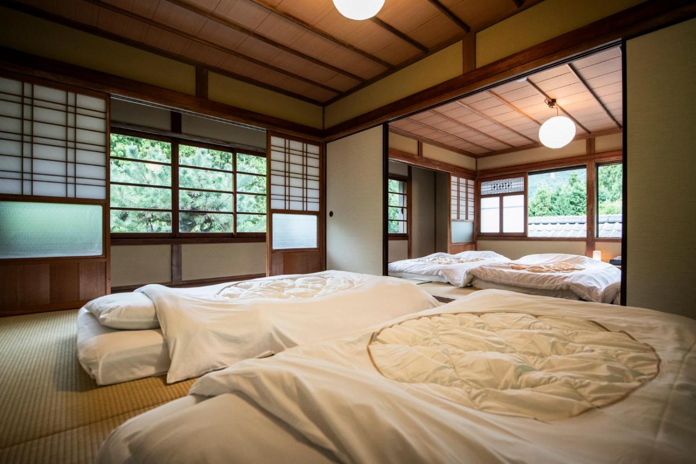 Deluxe Villa. Boasting a private entrance, this spacious villa also features 5 separate bedrooms and 2 bathrooms with a bath and a shower. In the fully equipped kitchen, guests will find a stovetop, a refrigerator, kitchenware and an oven. The air-conditioned villa features a flat-screen TV, a washing machine, tatami, a dining area as well as river views. The unit has 19 futons. ;