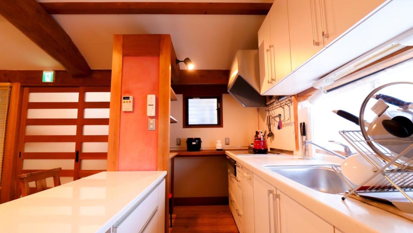 One-Bedroom Apartment. This spacious apartment comprises 1 bedroom, a kitchen and 1 bathroom with a bath and a shower. Guests can make meals in the kitchen that comes with a refrigerator, a dishwasher, a microwave and an electric kettle. The air-conditioned apartment provides a flat-screen TV, a washing machine, tatami, a dining area as well as a quiet street view. The unit offers 2 beds and 3 futons.