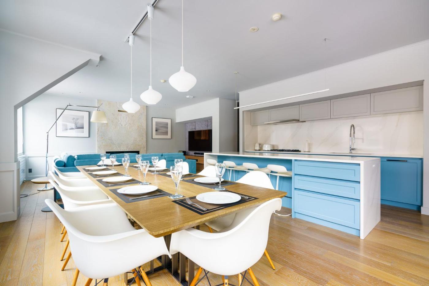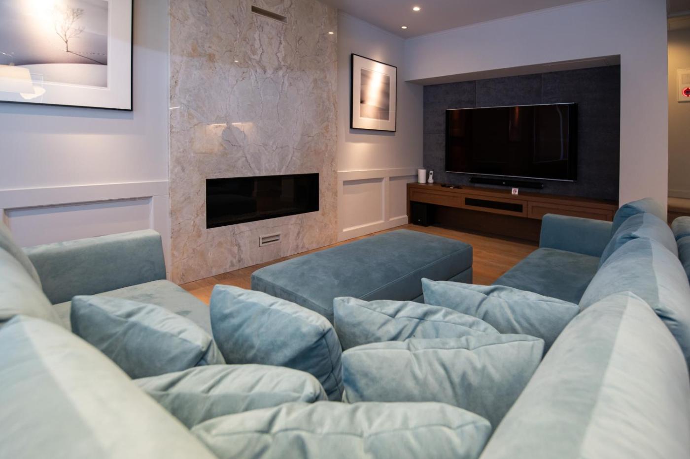 Four-Bedroom House. This townhouse comes with a flat-screen TV, an electric kettle and a microwave. Guests can relax in the comfortable sofas and the spacious dining area. There is a full kitchen with a dishwasher, an oven, a fridge and stoves. Includes 2 private bathrooms with a bathtub and a hairdryer. Laundry facilities and ski drying rooms are available on site.