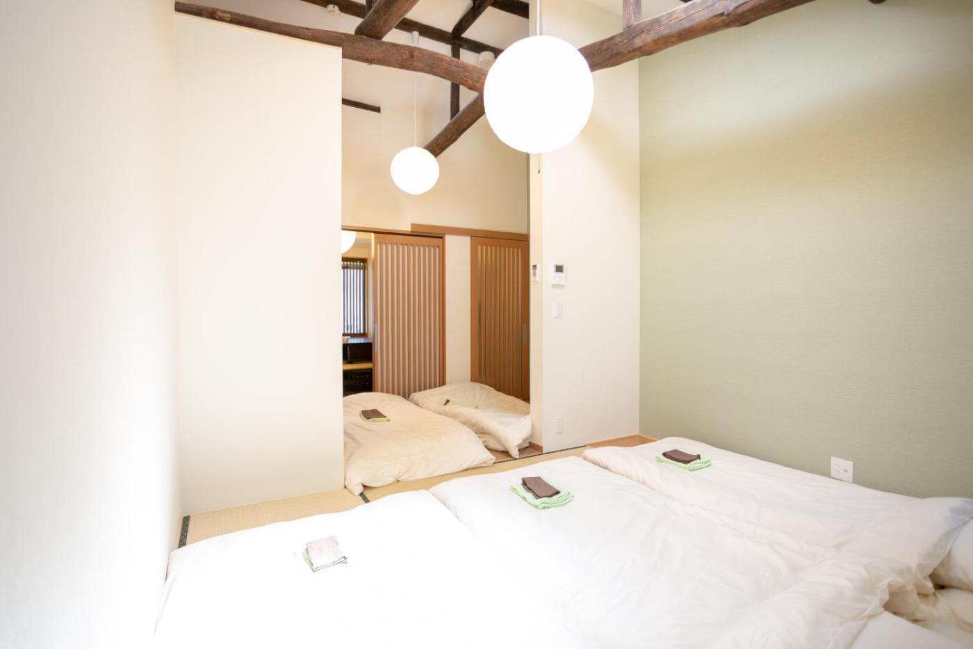 Family Room with Private Bathroom. The family room includes a private bathroom, well-fitted with a bath, a shower, a bidet, a hairdryer and slippers. In the well-fitted kitchen, guests will find a stovetop, a refrigerator, kitchenware and a microwave. This family room is air-conditioned and has a seating area with a flat-screen TV, a washing machine, tatami, a private entrance, as well as a dining area. The unit has 5 futons.