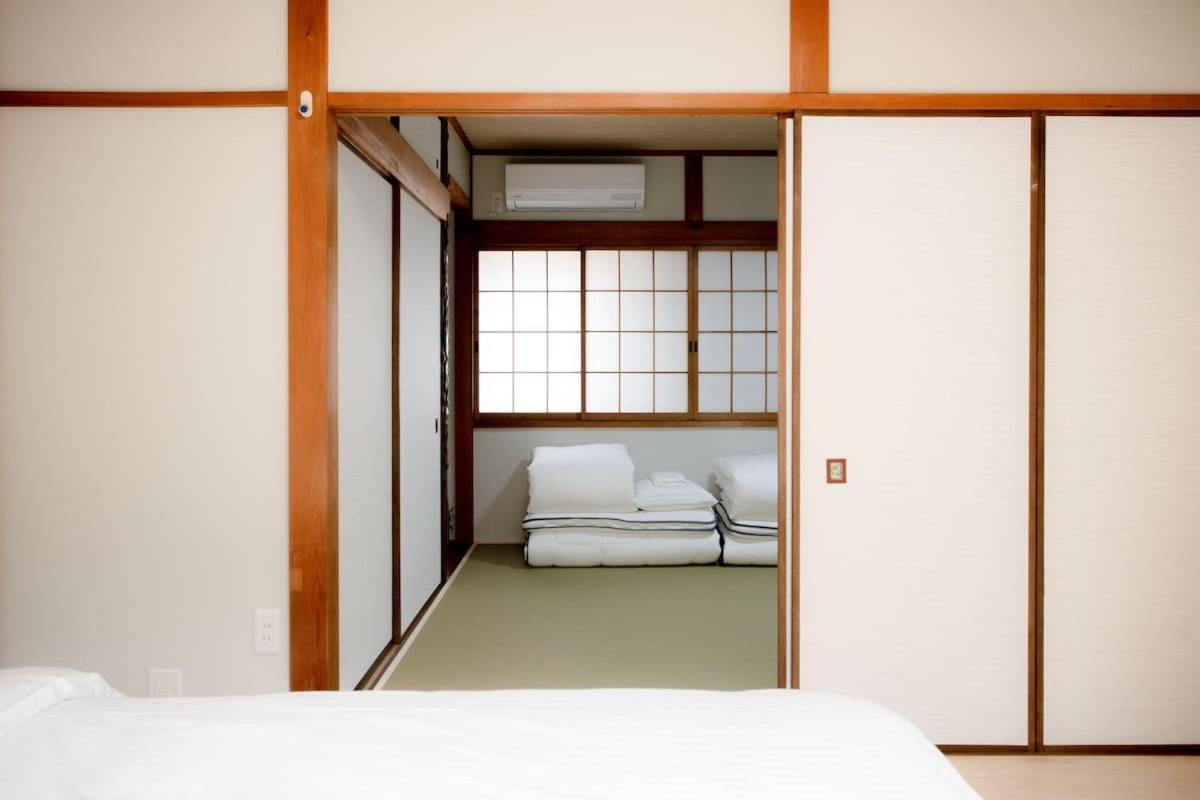 Two-Bedroom House. This holiday home is comprised of 1 living room, 2 separate bedrooms and 1 bathroom with a bath and free toiletries. The well-equipped kitchen features a stovetop, a refrigerator, kitchenware and a microwave. The air-conditioned holiday home offers a flat-screen TV, a washing machine, tatami, a dining area as well as a quiet street view. The unit offers 1 bed and 3 futons.