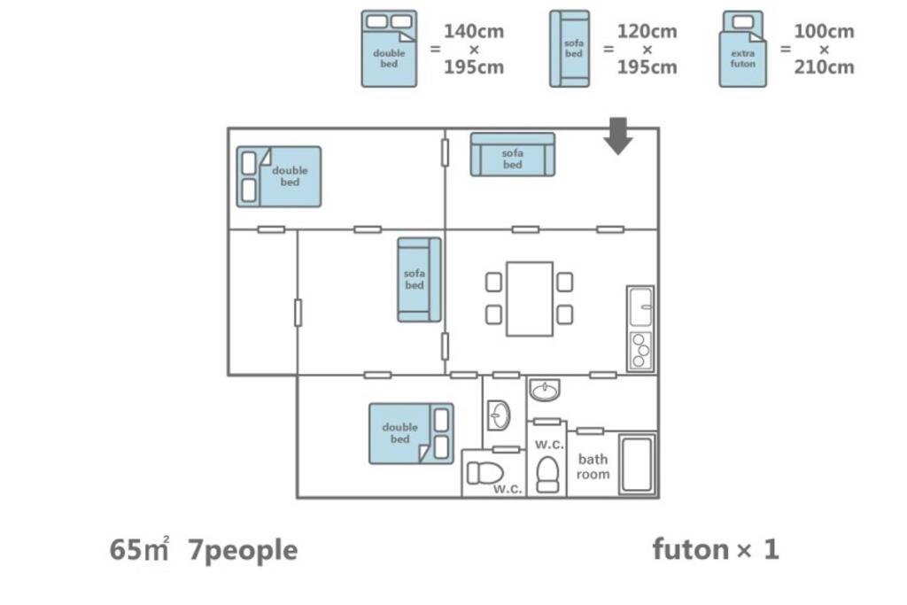 Three-Bedroom House. This air-conditioned holiday home comes with 1 living room, 3 separate bedrooms and 1 bathroom with a bath. Meals can be prepared in the kitchen, which features a stovetop, a refrigerator, kitchenware and a microwave. The holiday home features a washing machine, a dining area, an electric kettle, heating and a flat-screen TV. The unit has 4 beds and 1 futon.