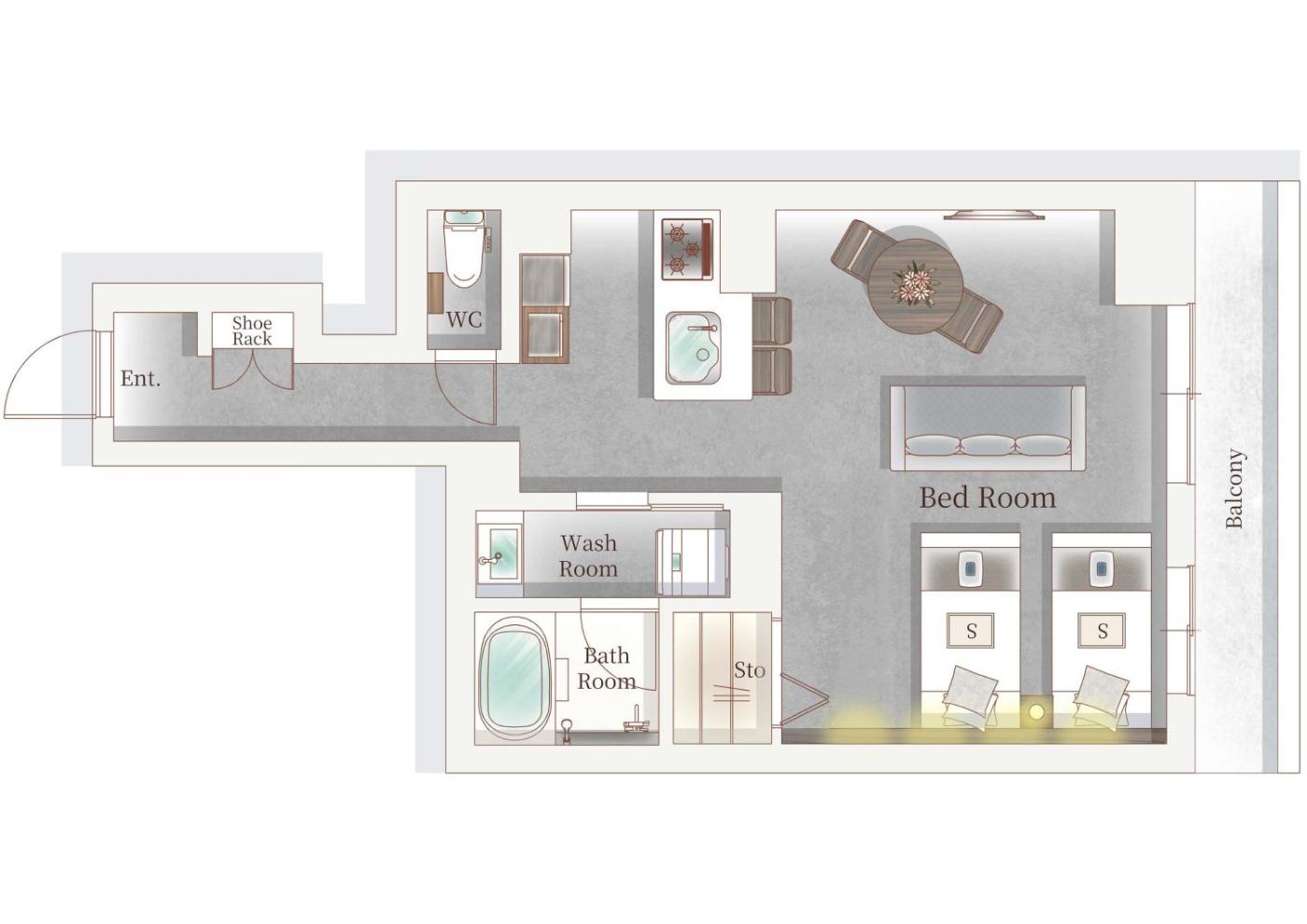 Suite. This suite includes 1 living room, 1 separate bedroom and 1 bathroom with a bath and free toiletries. The air-conditioned suite offers a flat-screen TV, a washing machine, soundproof walls and a tea and coffee maker. The unit has 4 beds. ;