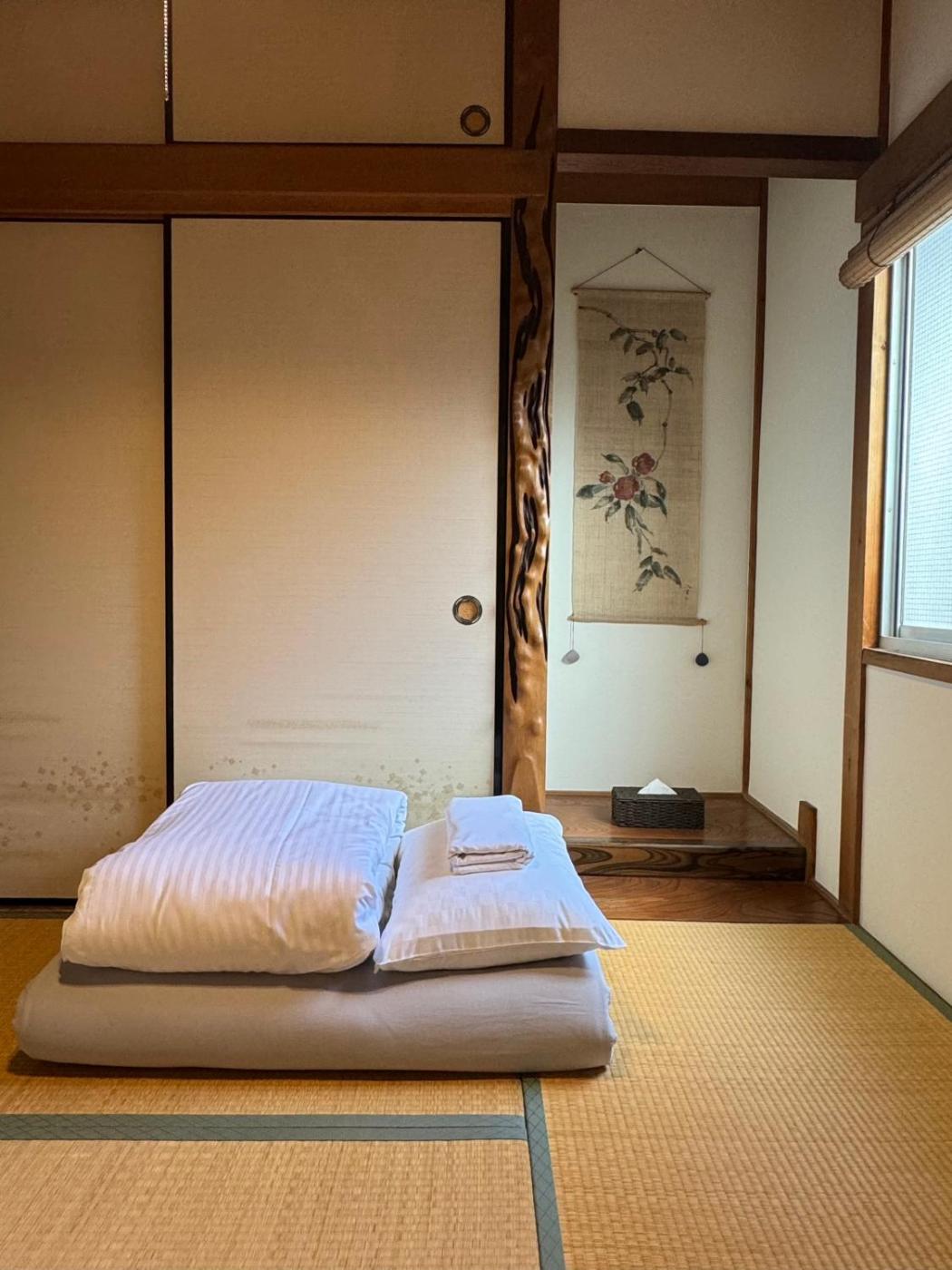 Two-Bedroom House. Featuring a private entrance, this air-conditioned holiday home is comprised of a kitchen, 2 bedrooms and 1 bathroom with a shower and a bidet. In the well-equipped kitchen, guests will find a stovetop, a refrigerator, kitchenware and a microwave. The holiday home offers a washing machine, tatami, a dining area, a flat-screen TV with streaming services, as well as a quiet street view. The unit offers 4 futons.