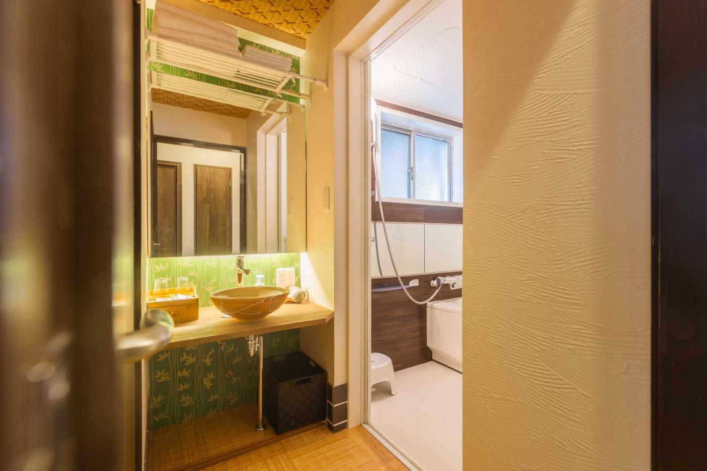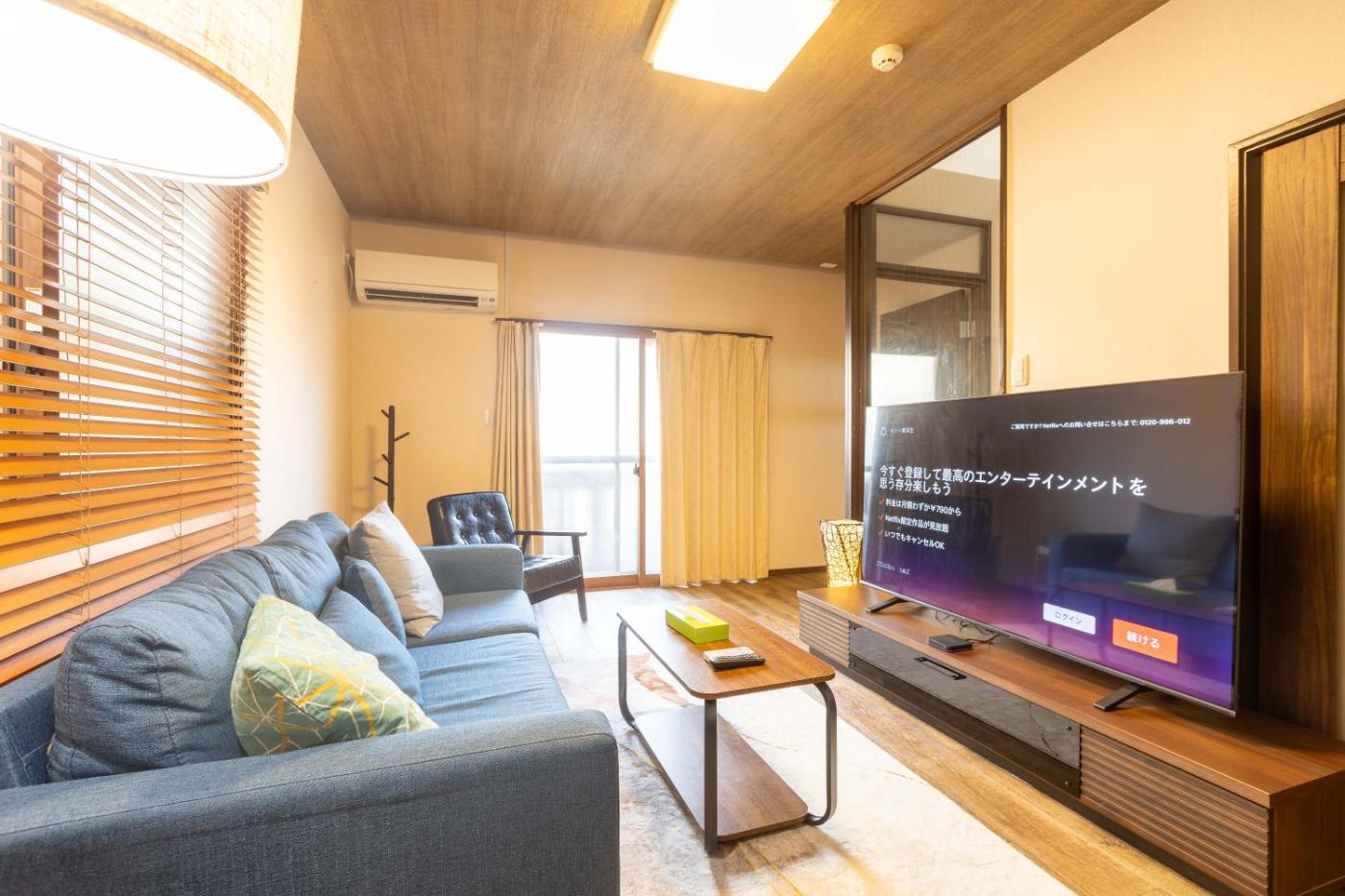Family Room with Bath. The spacious family room offers air conditioning, a washing machine, as well as a private bathroom featuring a bath and a bidet. The family rooms kitchen, which features a refrigerator and a microwave, is available for cooking and storing food. Boasting a balcony, this family room also provides tatami, a private entrance and a flat-screen TV. The unit offers 2 beds and 3 futons.