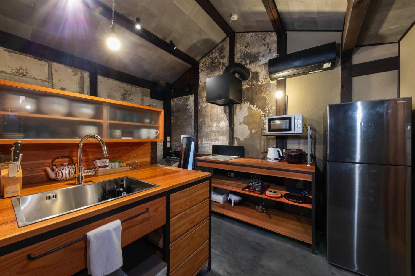 Holiday Home. Featuring a private entrance, this air-conditioned holiday home is comprised of 1 living room, 2 separate bedrooms and 1 bathroom with a bath and a shower. The well-fitted kitchen has a stovetop, a refrigerator, kitchenware and a microwave. The holiday home features tatami floors, a seating area with a flat-screen TV, a washing machine, a dining area as well as garden views. The unit offers 3 beds and 2 futons.