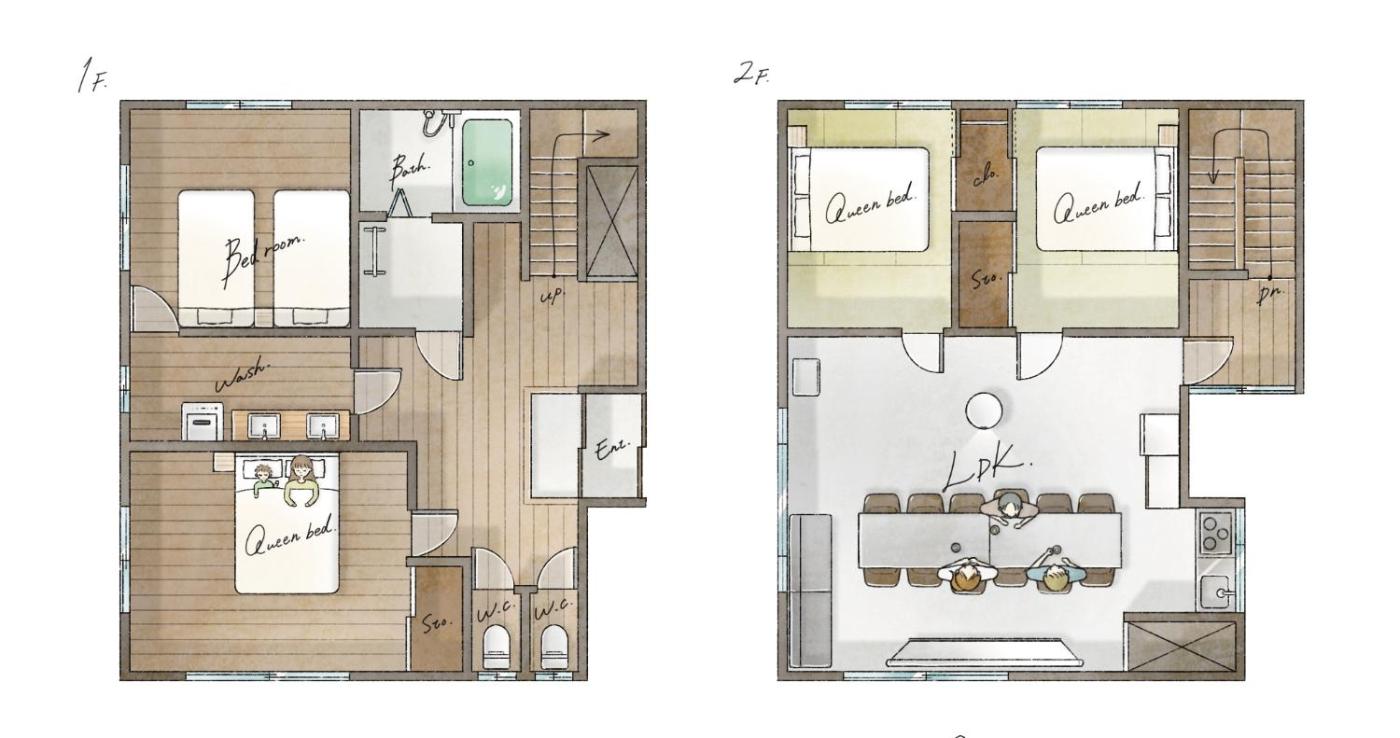 Four-Bedroom House. Featuring a private entrance, this air-conditioned holiday home consists of 1 living room, 4 separate bedrooms and 1 bathroom with a bath and a shower. Meals can be prepared in the well-fitted kitchen, which is equipped with a refrigerator, kitchenware, a microwave and a tea and coffee maker. The spacious holiday home provides a washing machine, tatami and lake views. The unit offers 6 beds and 2 futons.