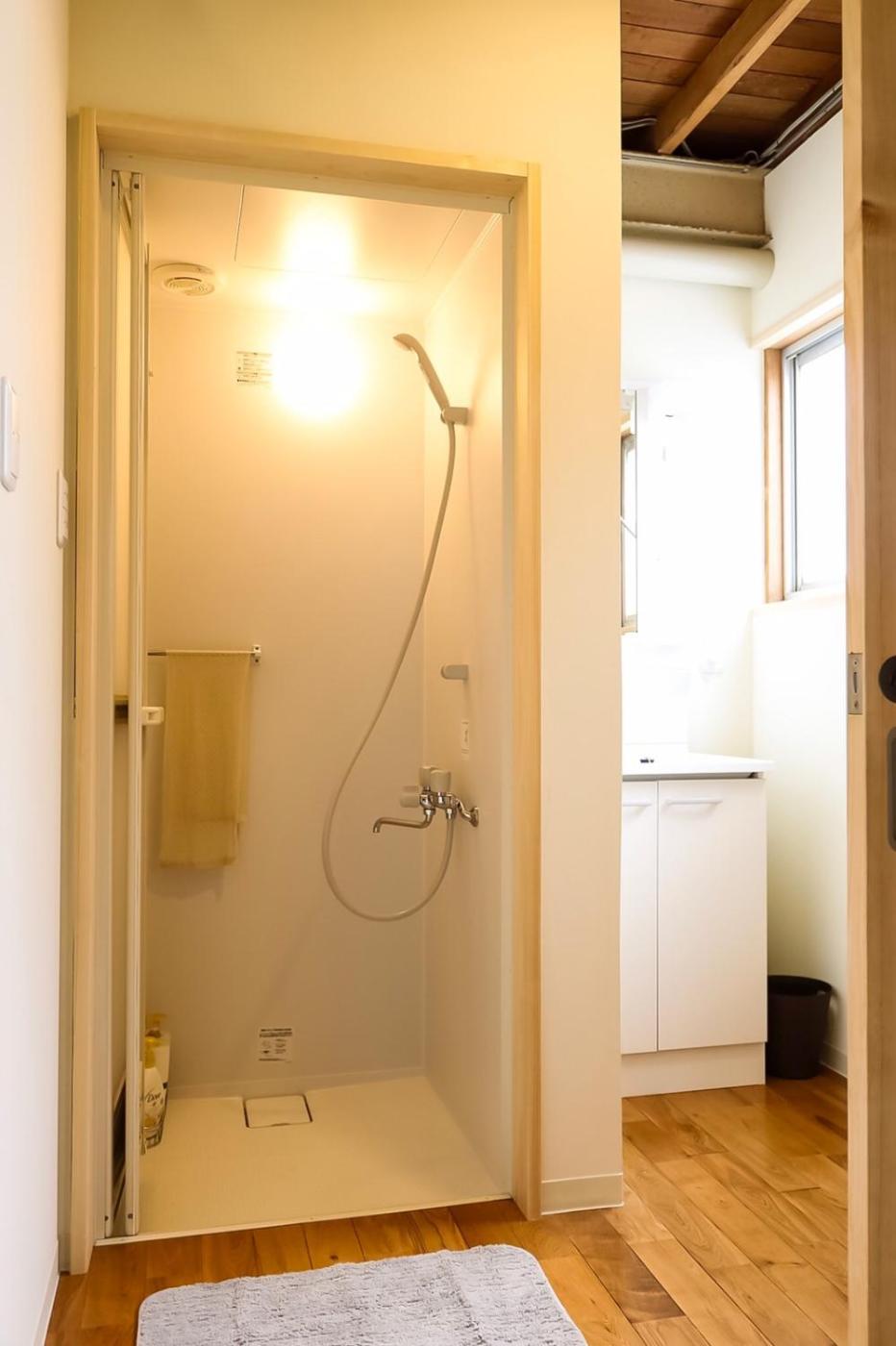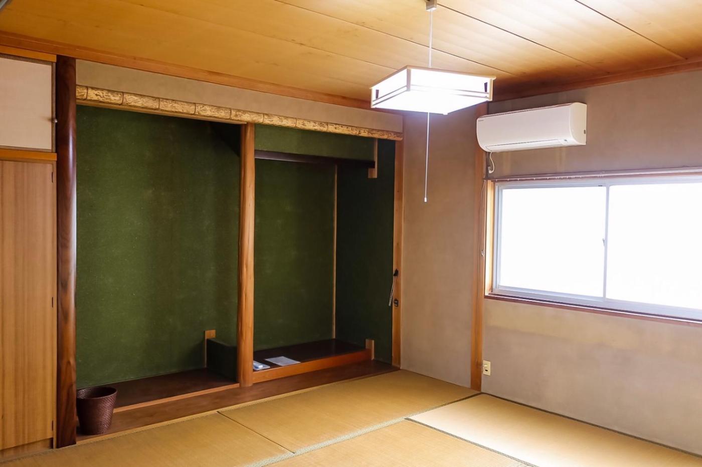 Japanese-Style Quadruple Room. The quadruple room offers air conditioning, a washing machine, as well as a shared bathroom featuring a shower and a bidet. The fully equipped kitchenette features a refrigerator, a microwave and an electric kettle. The quadruple room provides tatami, heating and a quiet street view. The unit offers 3 futons.